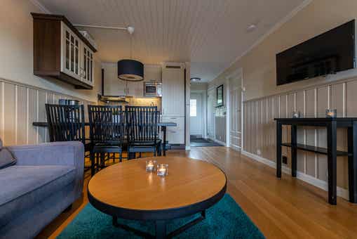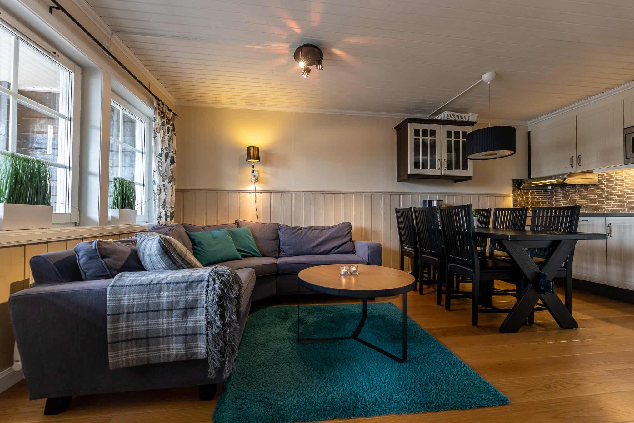Woonkamer met gecombineerde keuken.