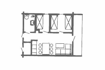 Slaapkamers:Slaapkamer-1 = 1 stapelbed met breed onderbed. Slaapkamer-2 = 2 stapelbedden.