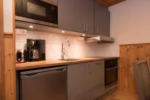 TV, droogkast, berging voor ski’s, balkon (geen sneeuwruimen), buitenmeubilair.