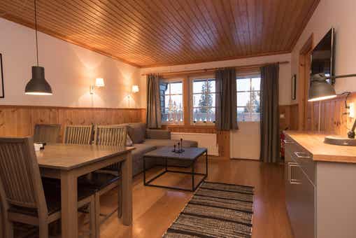 Gula Byn bevindt zich in Lindvallen. Appartement op de tweede verdieping, 6 bedden, 45 m², woonkamer met gecombineerde keuken, 2 slaapkamers, 1 douche, 1 toilet.