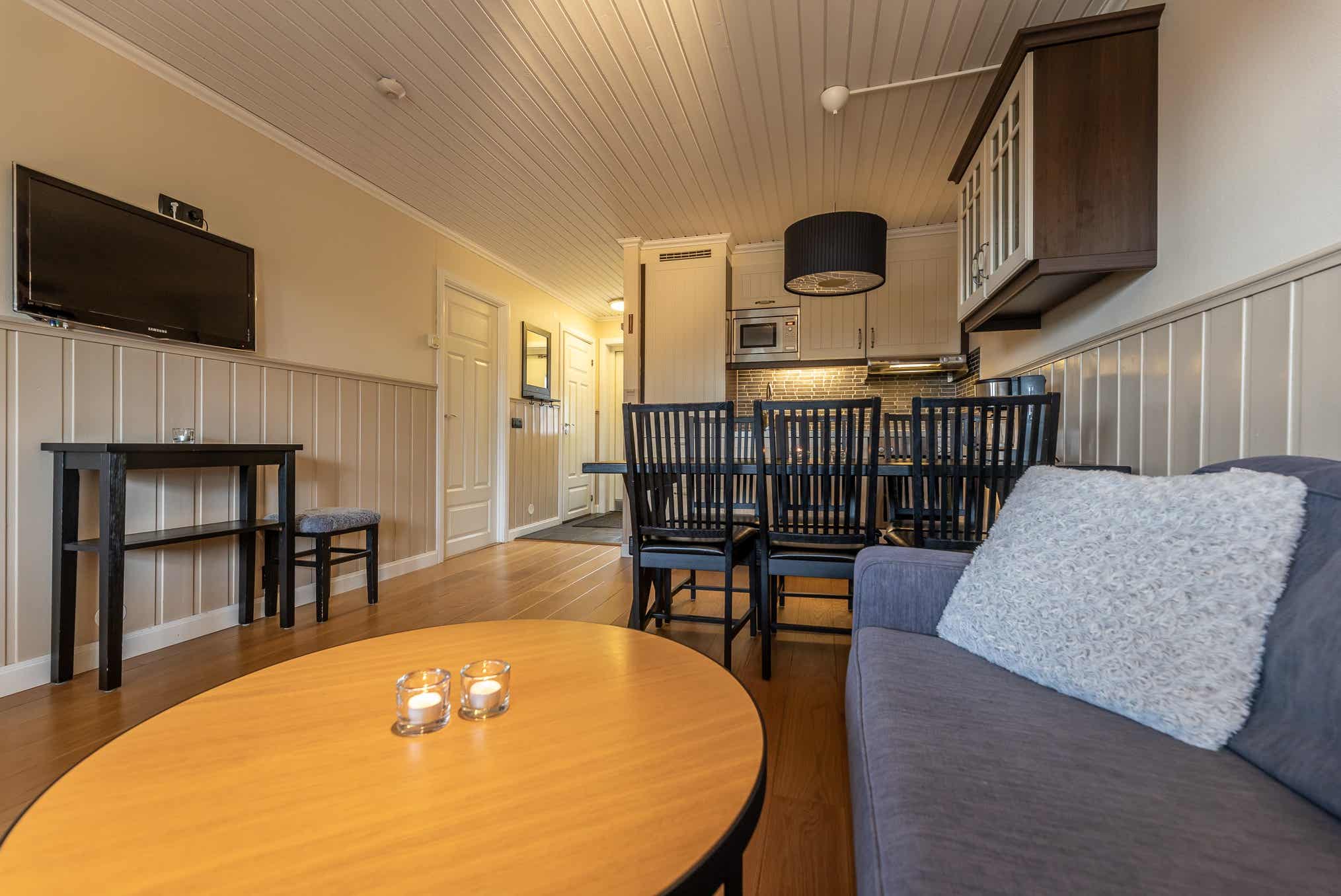 Woonkamer met gecombineerde keuken.