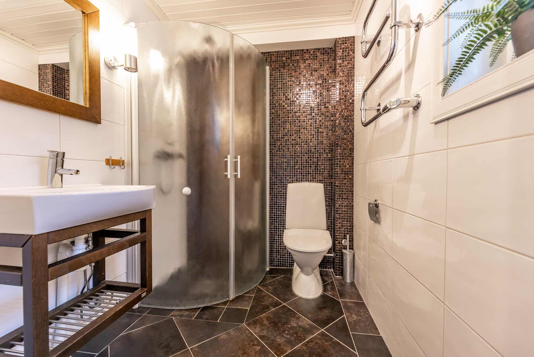 Badkamers:Badkamer 1: met douche/WC.