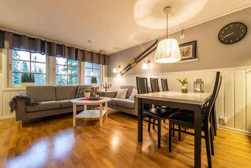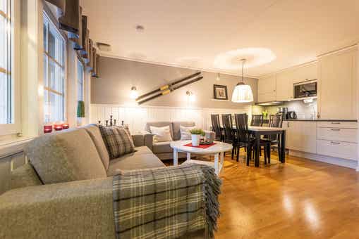 Gula Byn bevindt zich in Lindvallen. Appartement op de begane grond, 6 bedden, 45 m², woonkamer met gecombineerde keuken, 2 slaapkamers, 1 douche, 1 toilet.