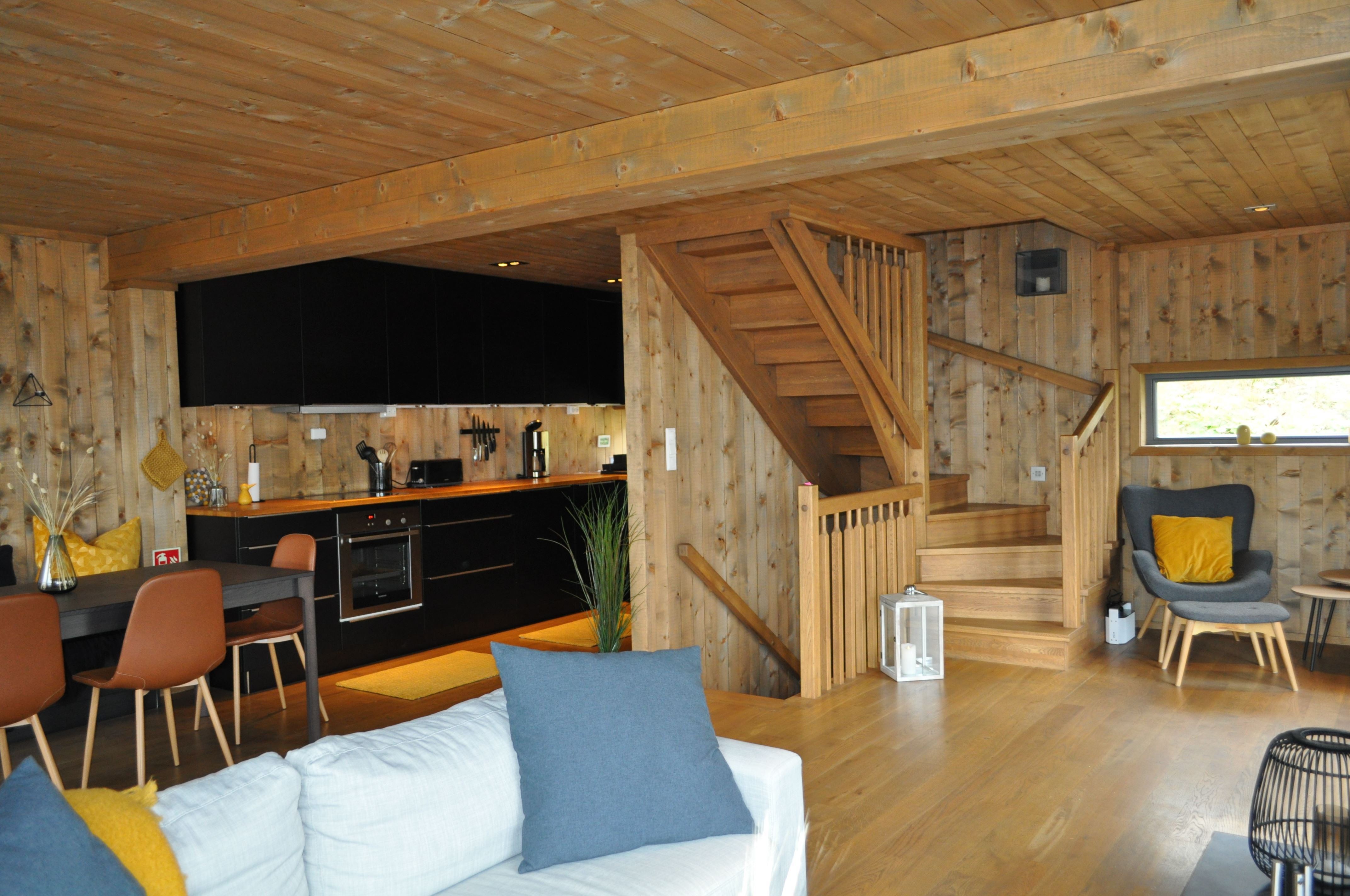 Na een dag van activiteiten kunt u ontspannen in de woonkamer die is uitgerust met een bank, tv en een warme open haard, ideaal voor gezellige avonden bij het vuur.