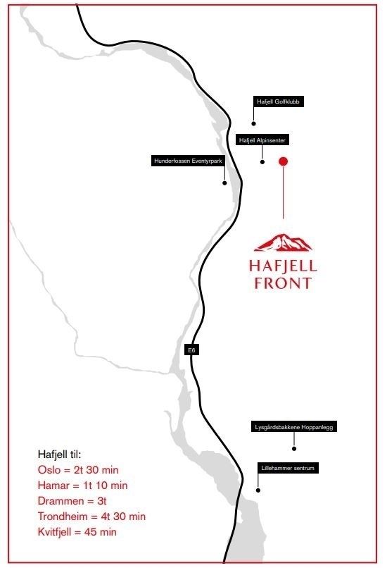 Hafjell Front ligt onder Geitryggen, aan het einde van Storsteinvegen, en grenzend aan de Kringelåsløypa in het noorden, aan dezelfde kant van het skigebied als Gaia, Ilsetra en Pellestova. Het biedt directe toegang tot de skipistes, langlaufloipes en wandelpaden.