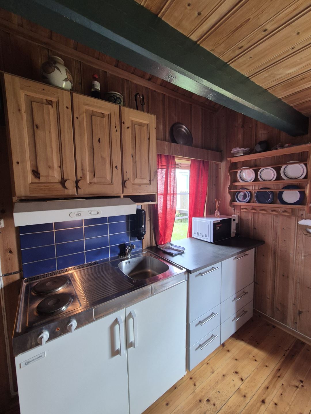 Unieke en gezellige hut met ruimte voor 4 personen. De hut heeft een slaapkamer met 2 eenpersoonsbedden en bedden op de zolder, een woonkamer met tv en een volledig uitgeruste keuken.
