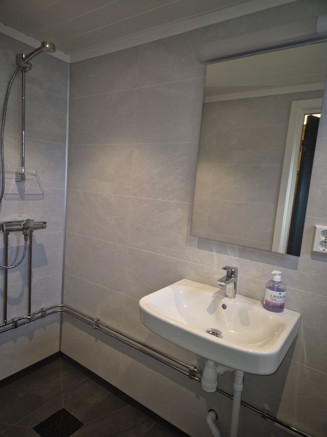 Er zijn wasproducten en apparatuur in de units.