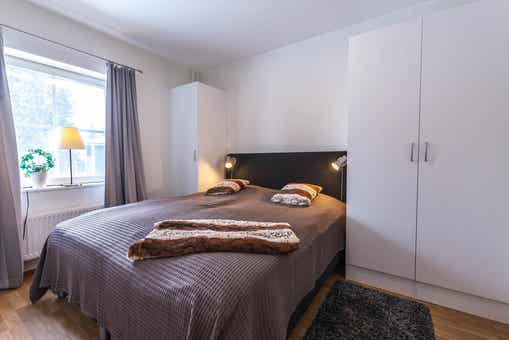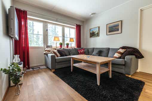 HC Ski Lodge bevindt zich in Högfjället. Appartement op de begane grond, 10 bedden, 85 m², woonkamer met gecombineerde keuken, 5 slaapkamers, 2 douches, 2 toiletten, sauna.