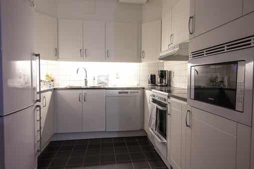 De keuken is voorzien van elektrische kookplaat met oven, koelkast, vriezer, vaatwasser, magnetron.