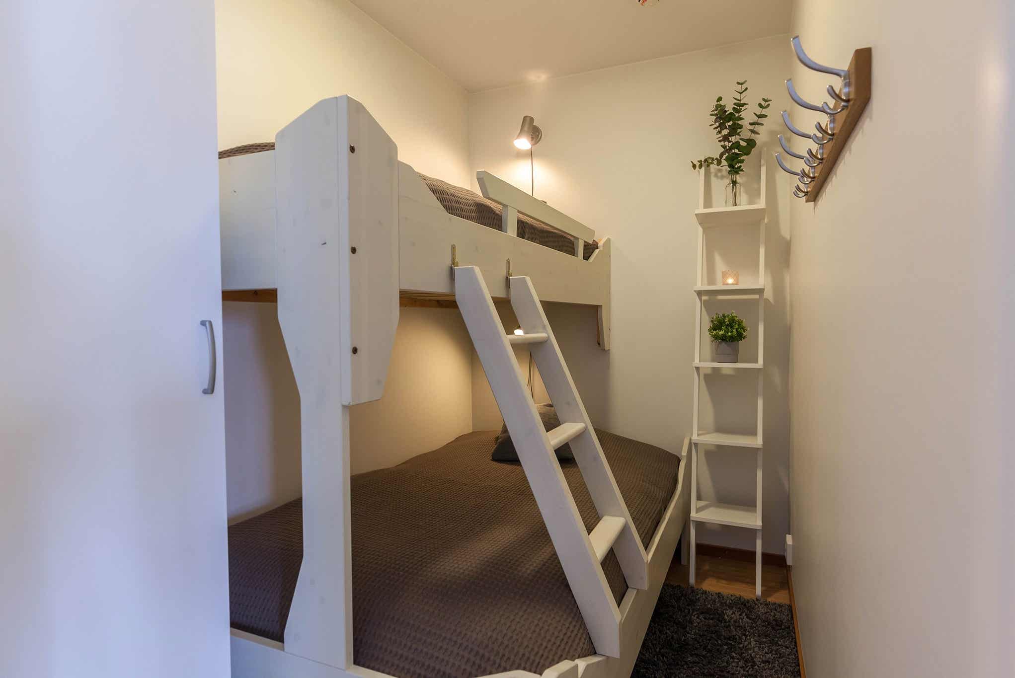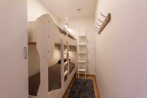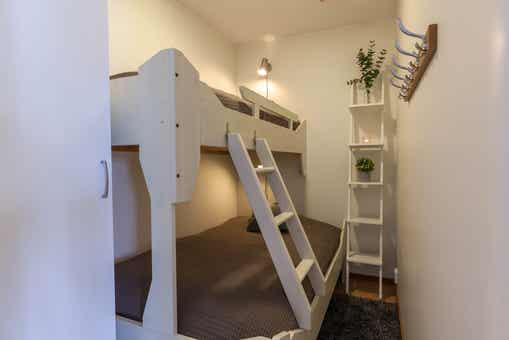 Slaapkamers:Slaapkamer-1 = 1 tweepersoonsbed. Slaapkamer-2 = 1 stapelbed. Slaapkamer-3 = 1 stapelbed. Slaapkamer-4 = 1 tweepersoonsbed. Slaapkamer-5 = 1 stapelbed met 120 cm breed onderbed en 90 cm breed bovenbed.