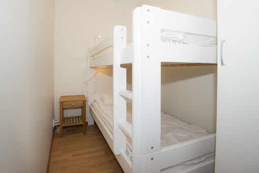 Slaapkamers:Slaapkamer-1 = 1 tweepersoonsbed. Slaapkamer-2 = 1 stapelbed, in een kamer zonder raam. Slaapkamer-3 = 1 stapelbed, in een kamer zonder raam.