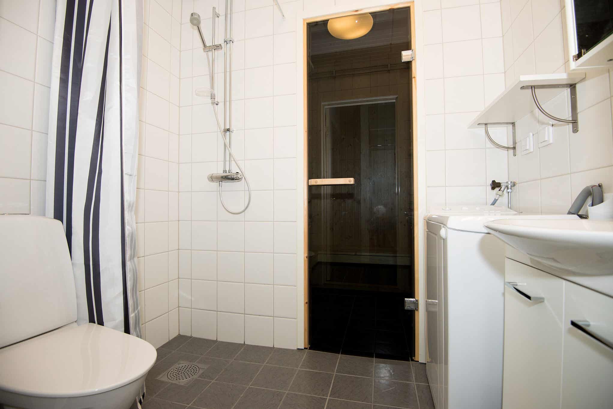 Badkamers:Badkamer 1: met douche/WC/sauna.