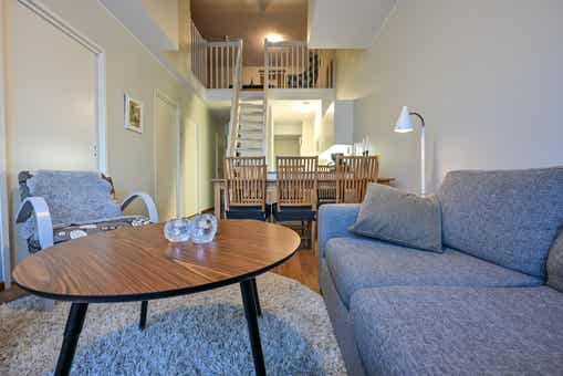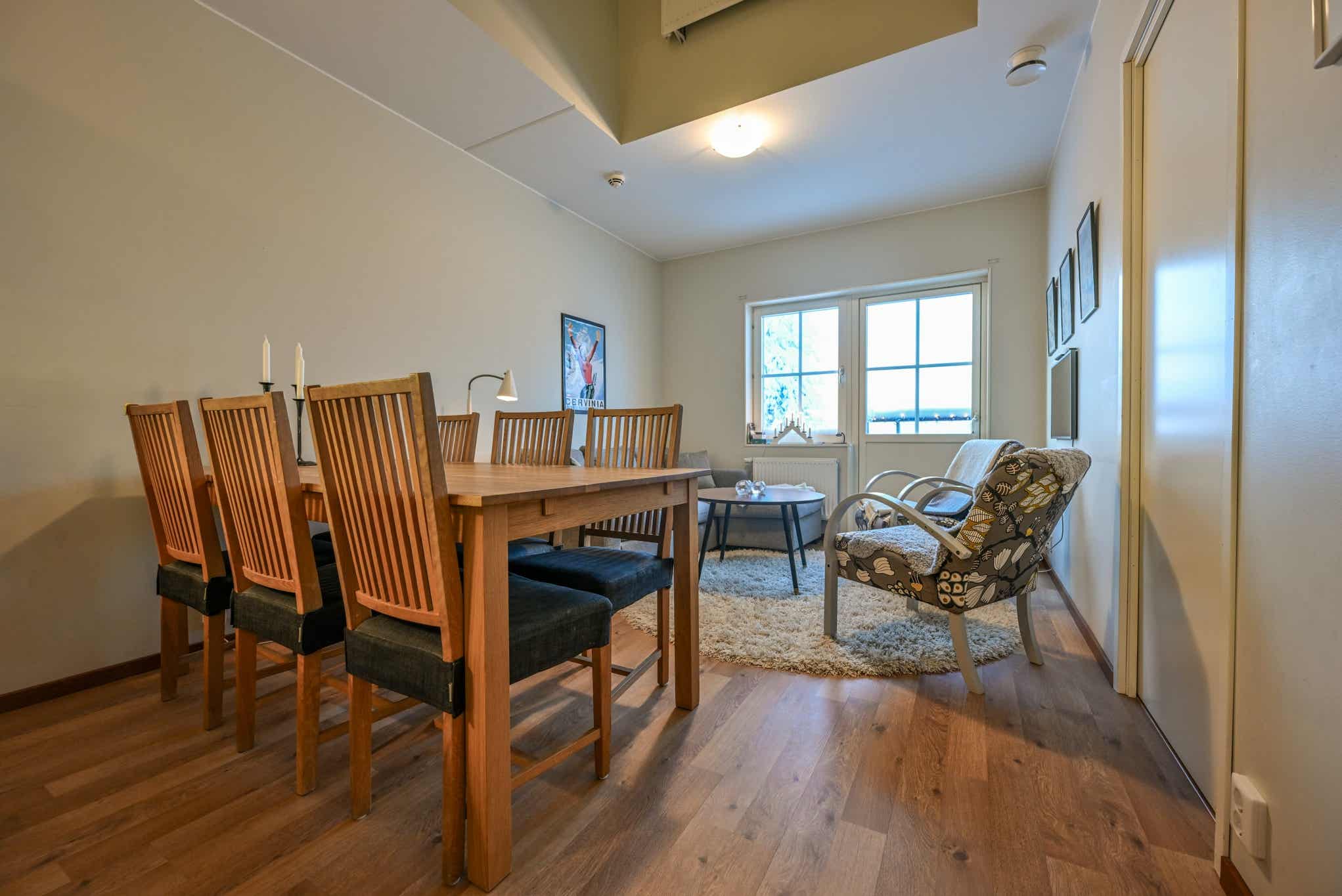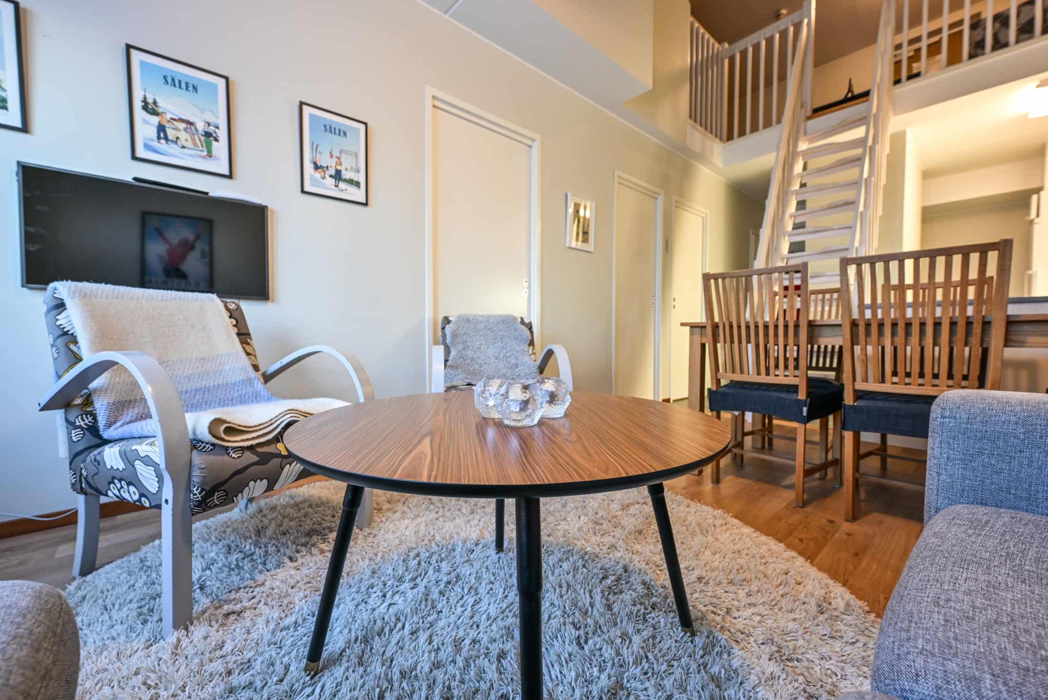 HC Ski Lodge bevindt zich in Högfjället. appartement met vide, 6 bedden, 70 m², woonkamer met gecombineerde keuken, 3 slaapkamers, 1 douche, 1 toilet, sauna.