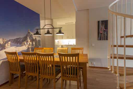 TV, wasmachine, 2 droogkasten, berging voor ski’s, balkon (geen sneeuwruimen).