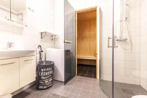Badkamers:Badkamer 1: met douche/WC/sauna. Badkamer 2: met douche/WC.