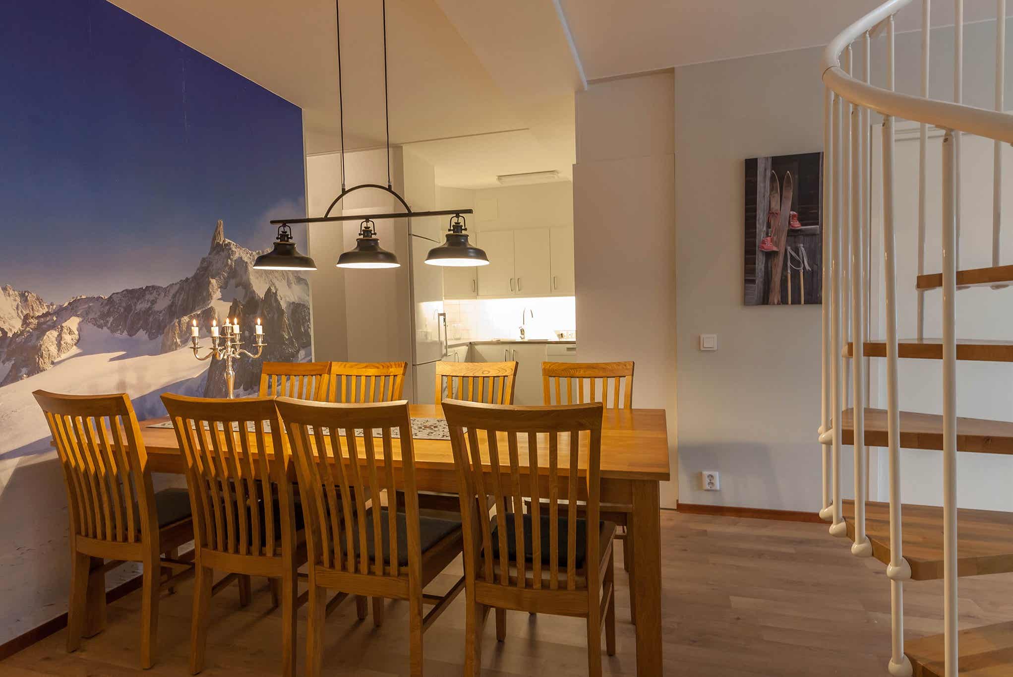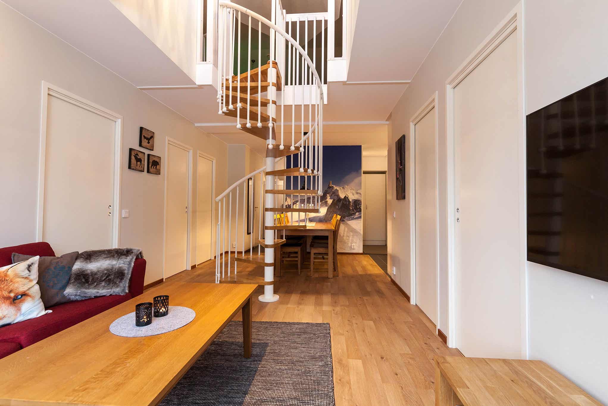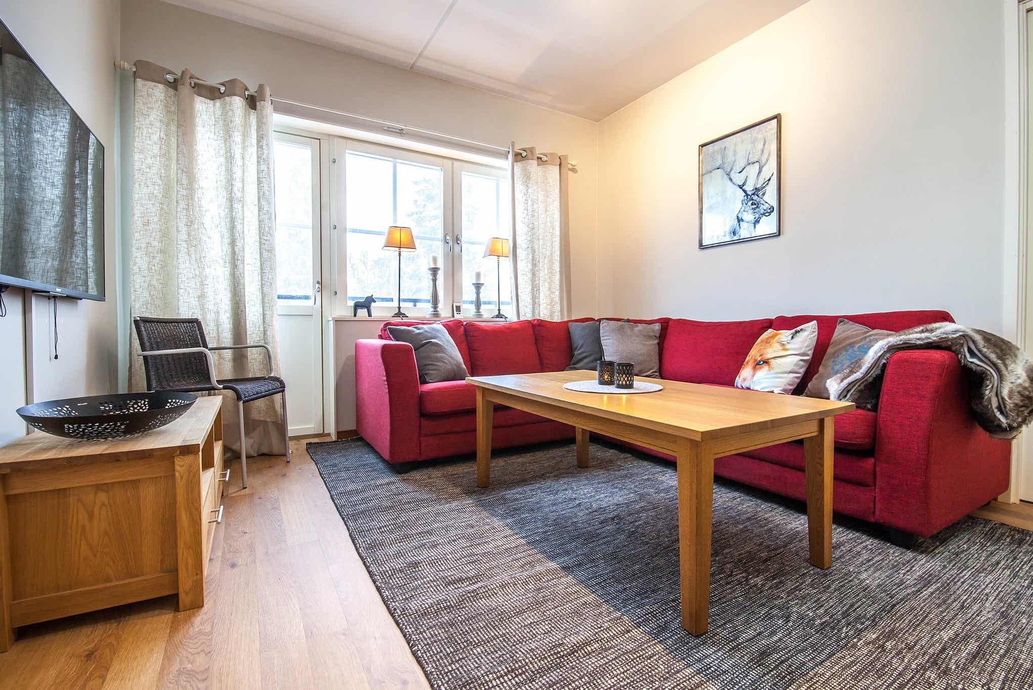 HC Ski Lodge bevindt zich in Högfjället. appartement met vide, 10 bedden, 145 m², woonkamer met gecombineerde keuken, 5 slaapkamers, 2 douches, 2 WC, sauna.