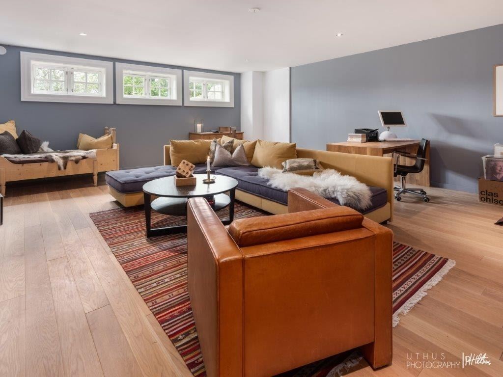 Op de begane grond bevindt zich een hal met leisteen, een aparte garderobe en een apart toilet. Vanuit de hal toegang tot een ruime woonkamer met open haard, hoekbank en diverse comfortabele stoelen, vanuit de woonkamer toegang tot twee terrassen met weids uitzicht richting Vestlia, alsmede een aparte tv-kamer met grote bank en tv met decoder en Apple TV. Verderop in de ruime en goed uitgeruste eetkeuken van Huseby met kookplaat, oven en vaatwasser. Eigen open haard in de keuken voor een gezellige en sfeervolle beleving. Waterverwarming in hal, wc, woonkamer en keuken. Op de begane grond vindt u tevens een apart gedeelte met een master suite met kleedkamer, een slaapkamer met een tweepersoonsbed, ladekast en een eigen badkamer met toilet en douche.