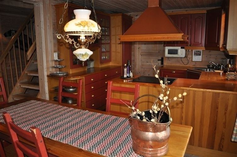 Hemsætervegen 97 biedt alles wat u nodig heeft voor een ontspannen verblijf. De keuken is voorzien van een koelkast, vriezer, gasfornuis, vaatwasser, magnetron en koffiezetapparaat.