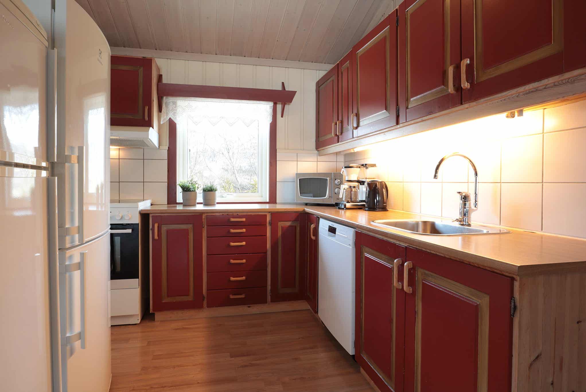 Keuken: fornuis, koelkast met vriesvak, vaatwasser, magnetron.