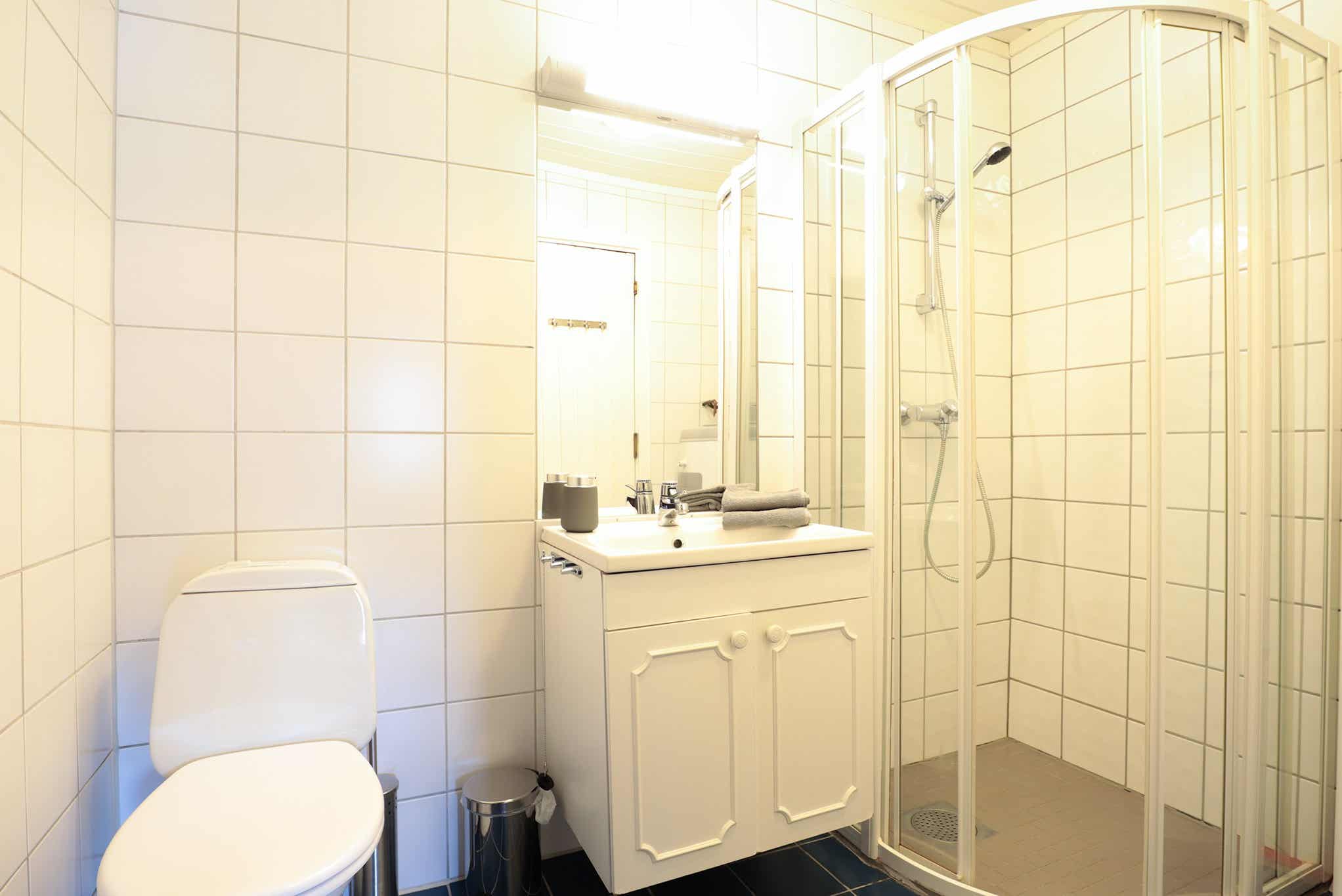 Badkamers:Badkamer 1: sauna, douche, toilet.