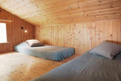 Slaapkamers:Slaapkamer 1: 1 tweepersoonsbed. Slaapkamer 2: 1 stapelbed met 120 cm breed onderbed. Slaapkamer 3: 1 stapelbed.