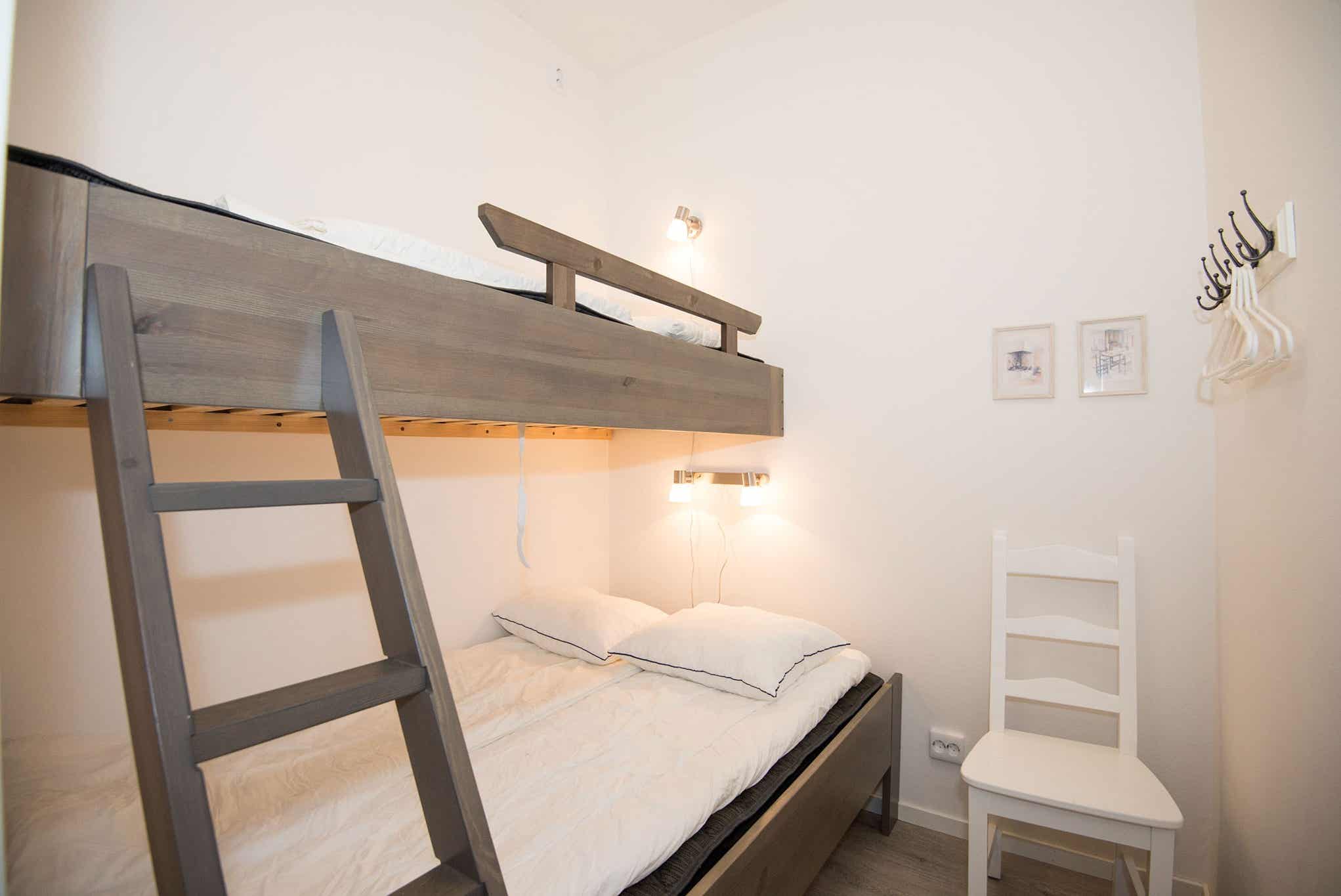 Slaapkamers:Slaapkamer-1 = 1 stapelbed met 120 cm breed onderbed en 80 cm breed bovenbed.