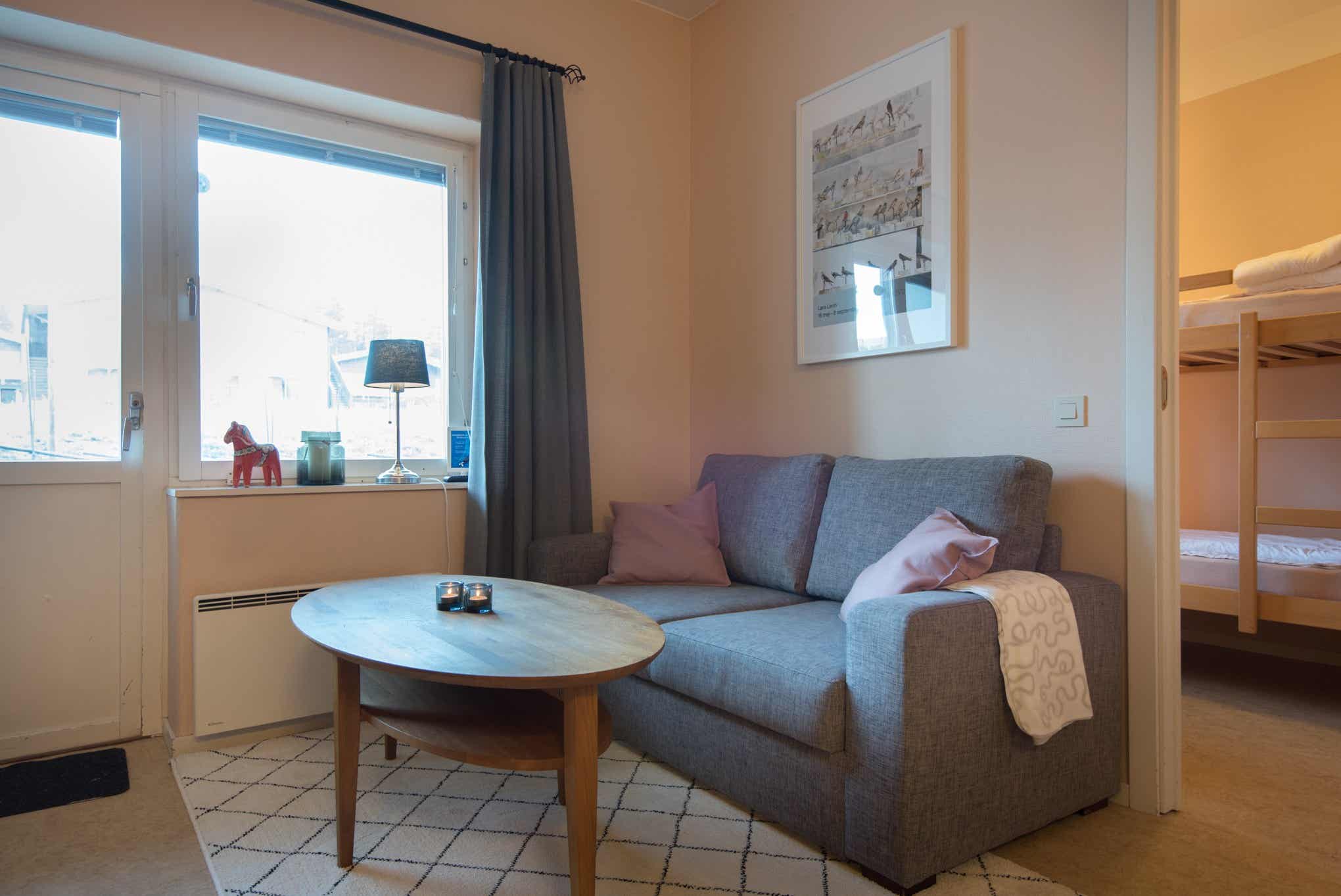 Hundfjällscenter bevindt zich in Hundfjället. Appartement, 4 bedden, 36 m², woonkamer met gecombineerde keuken, 1 slaapkamer, 1 douche, 1 toilet, toegang tot een gedeelde sauna.
