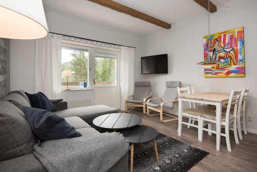 Hundfjällscenter bevindt zich in Hundfjället. Appartement, 4 bedden, 36 m², woonkamer met gecombineerde keuken, 2 slaapkamers, waarvan 1 slaapkamer raam mist, 1 douche, 1 toilet, toegang tot een gedeelde sauna.