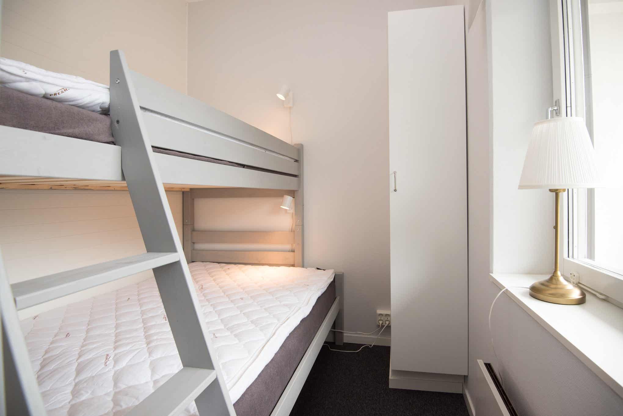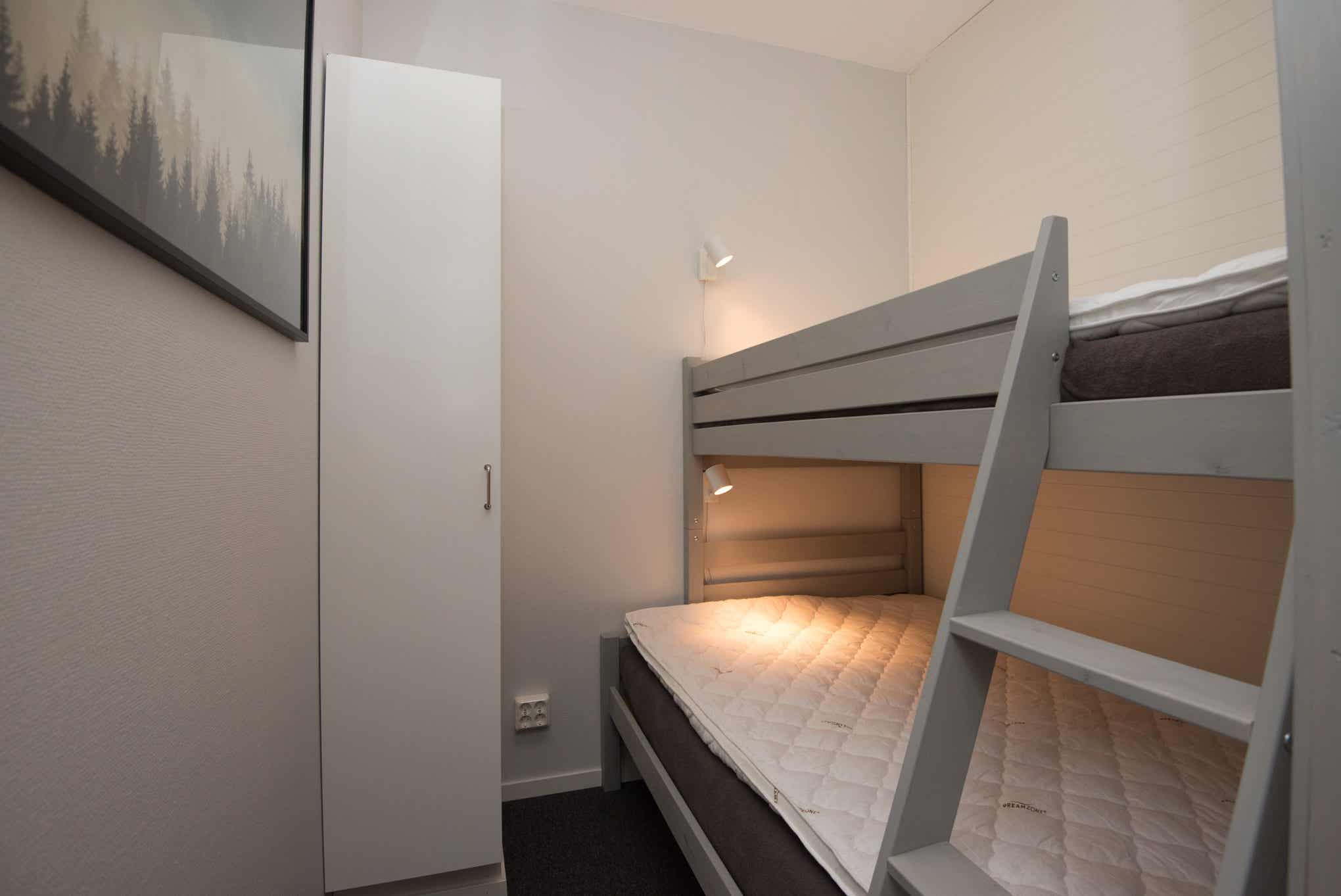 Slaapkamers:Slaapkamer-1 = 1 stapelbed met 120 cm breed onderbed.