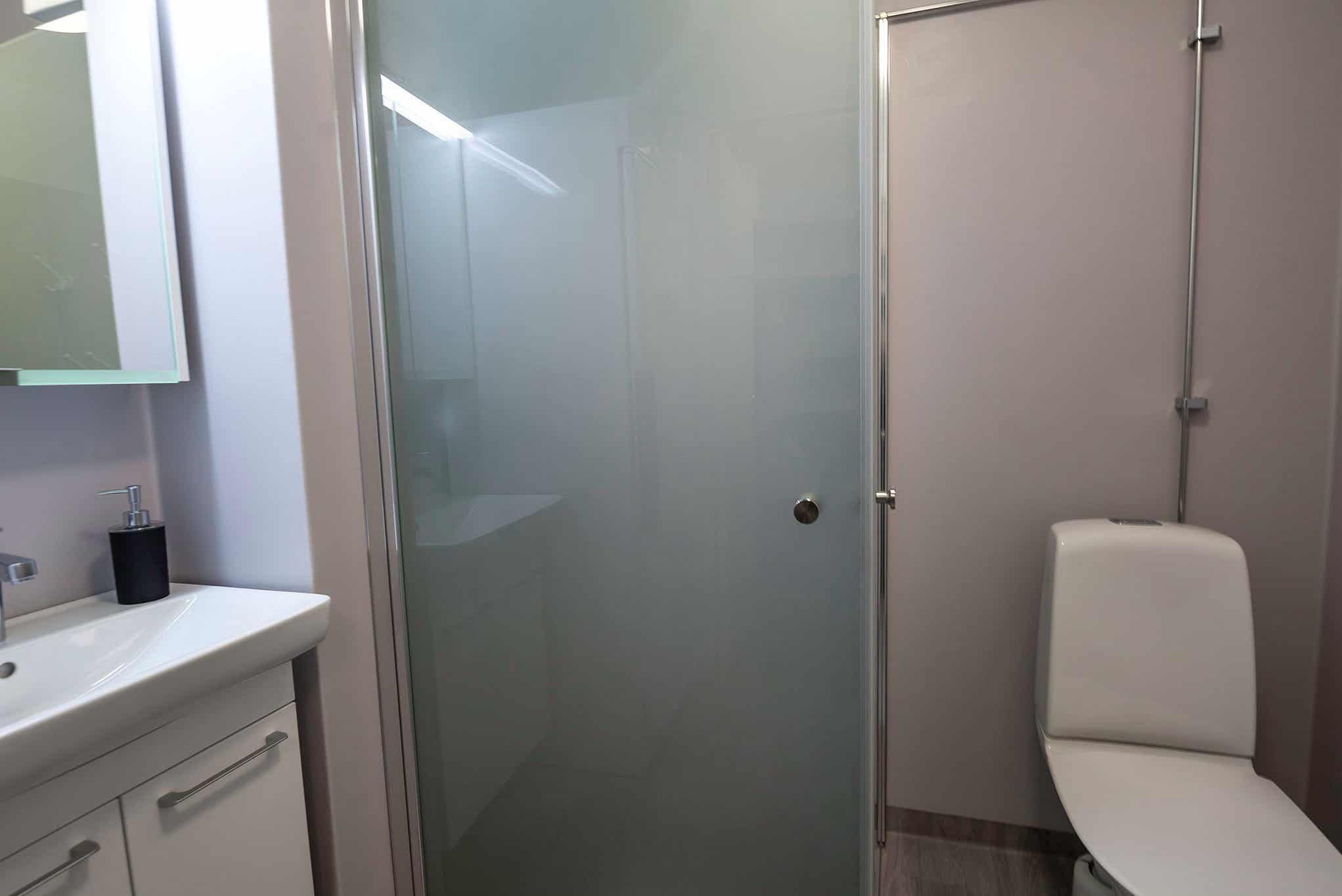 Badkamers:Badkamer 1: met douche/WC.