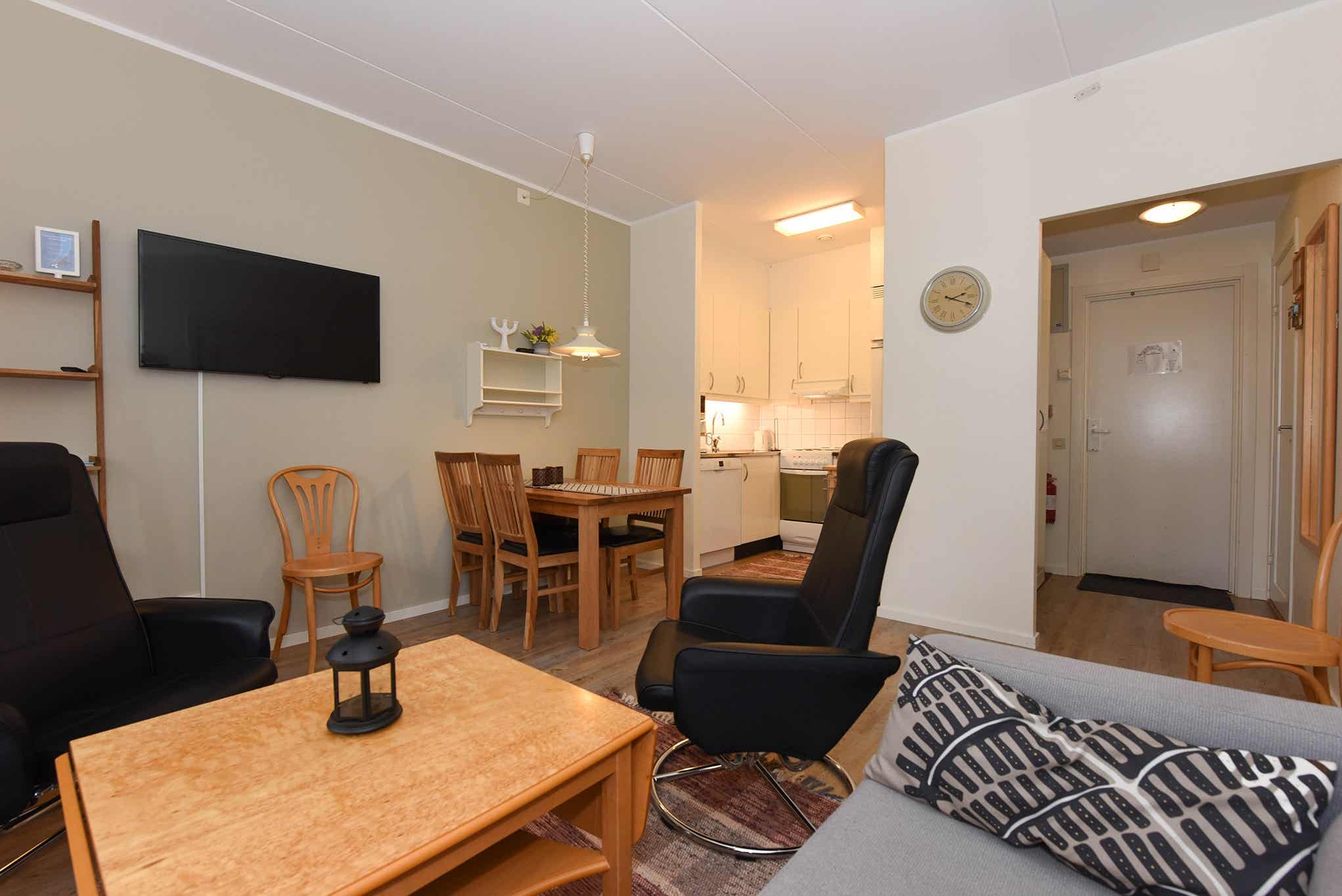 TV, droogkast, berging voor ski’s, balkon (geen sneeuwruimen), toegang tot een gedeelde sauna en wasruimte, lift aanwezig in het huis, 1 parkeerplaats.