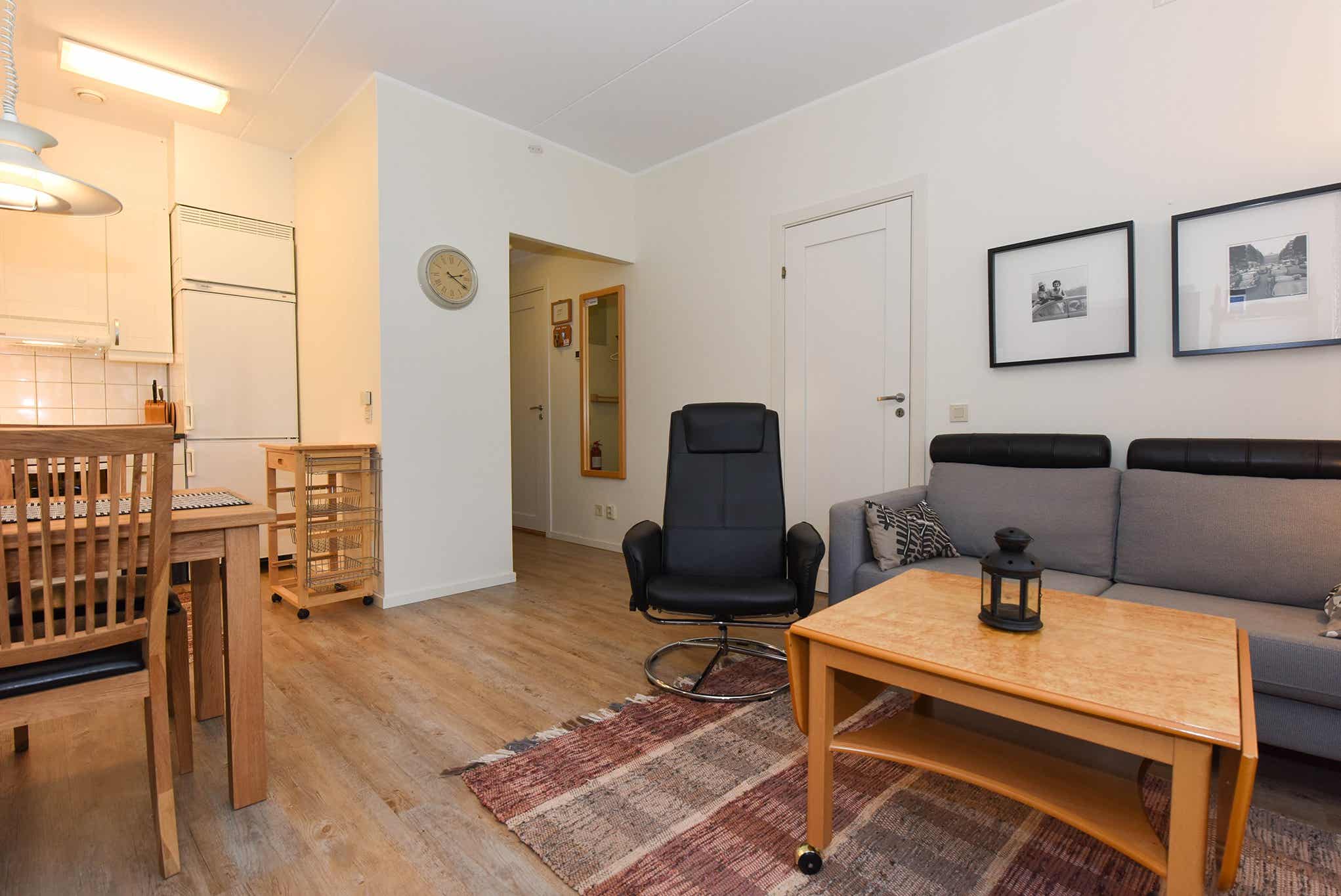 Woonkamer met gecombineerde keuken.