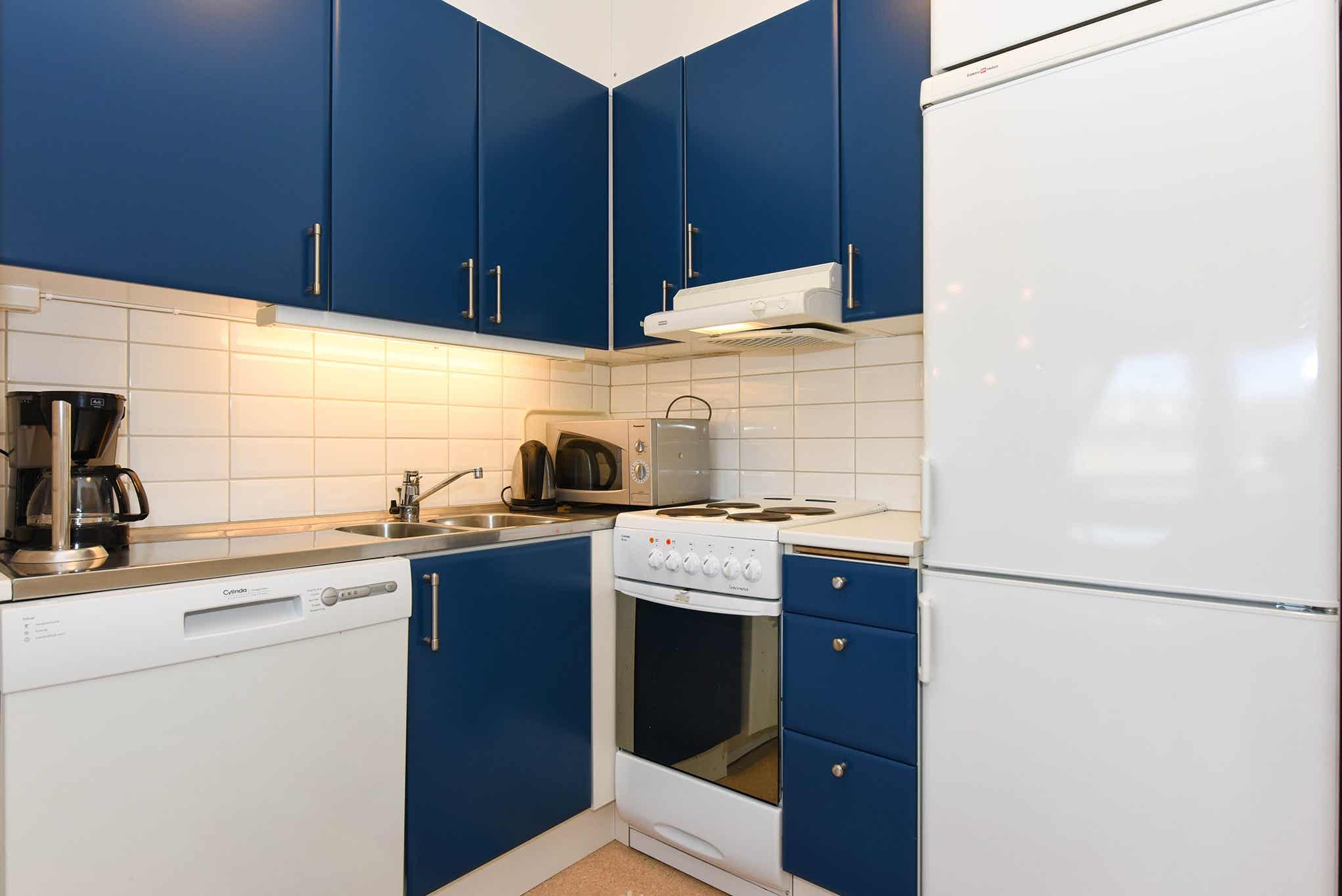 De keuken is voorzien van fornuis met oven, koelkast, vriezer, vaatwasser, magnetron.