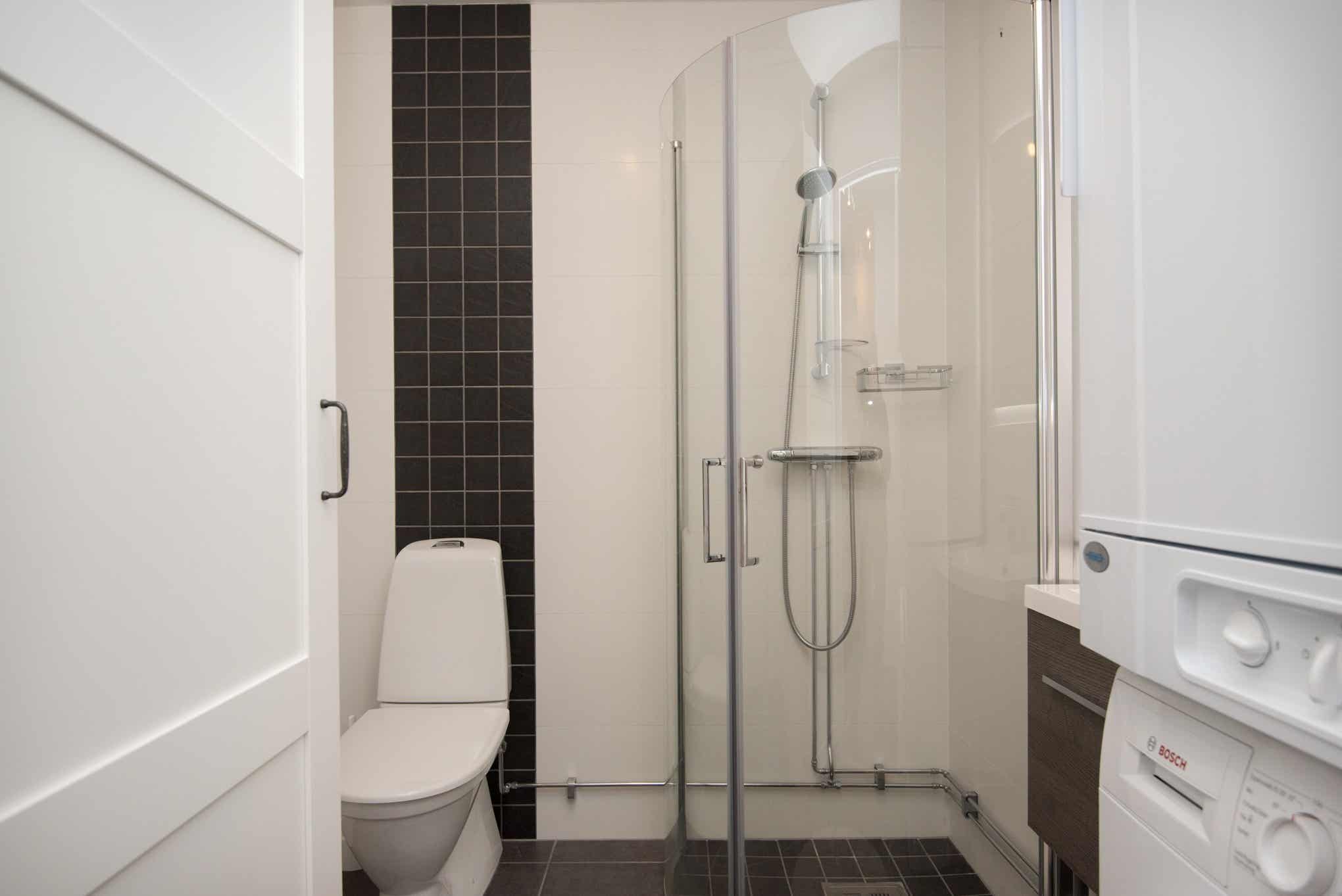 Badkamers:Badkamer 1: met douche/WC.