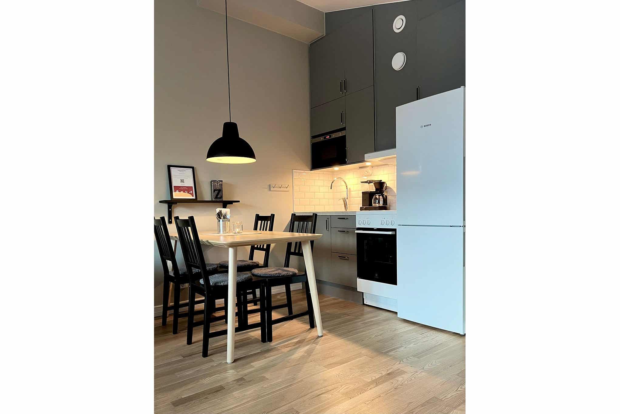 De keuken is voorzien van fornuis met oven, koelkast, vriezer, magnetron.