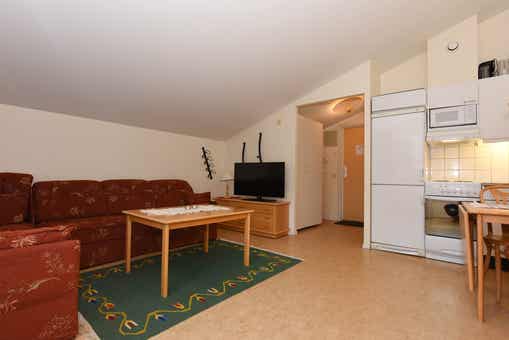 TV, droogkast, berging voor ski’s, balkon (geen sneeuwruimen), toegang tot een gedeelde sauna en wasruimte, laag plafond in het bovenste stapelbed op het stapelbed geschikt voor kinderen, lift aanwezig in het huis, 1 parkeerplaats.