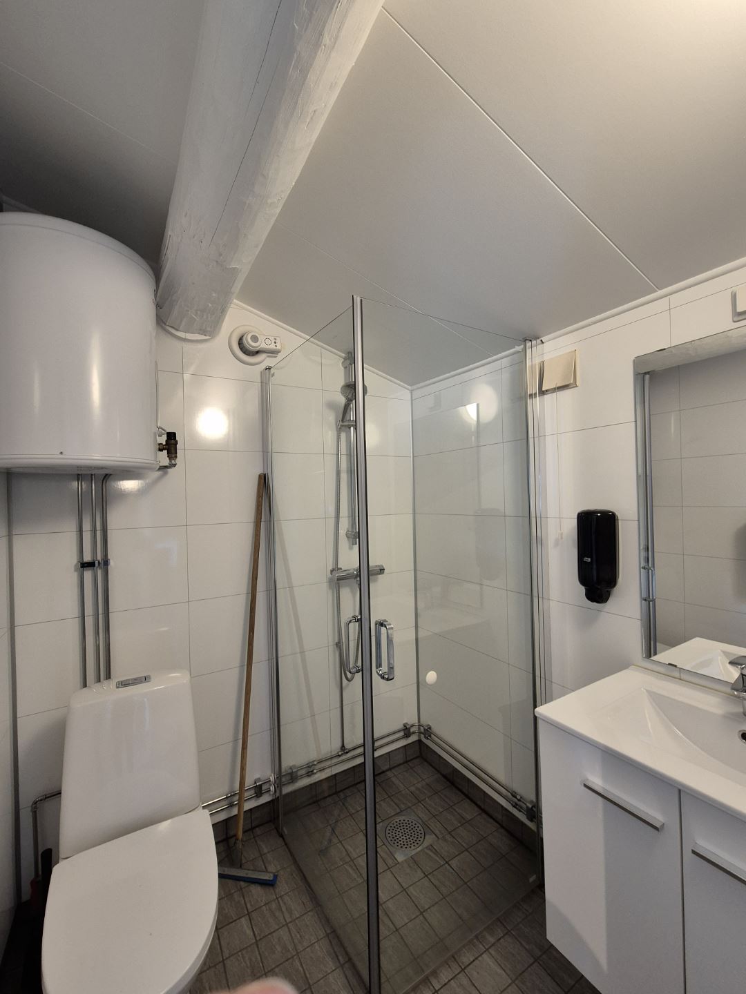 Er zijn wasproducten en apparatuur in de units.