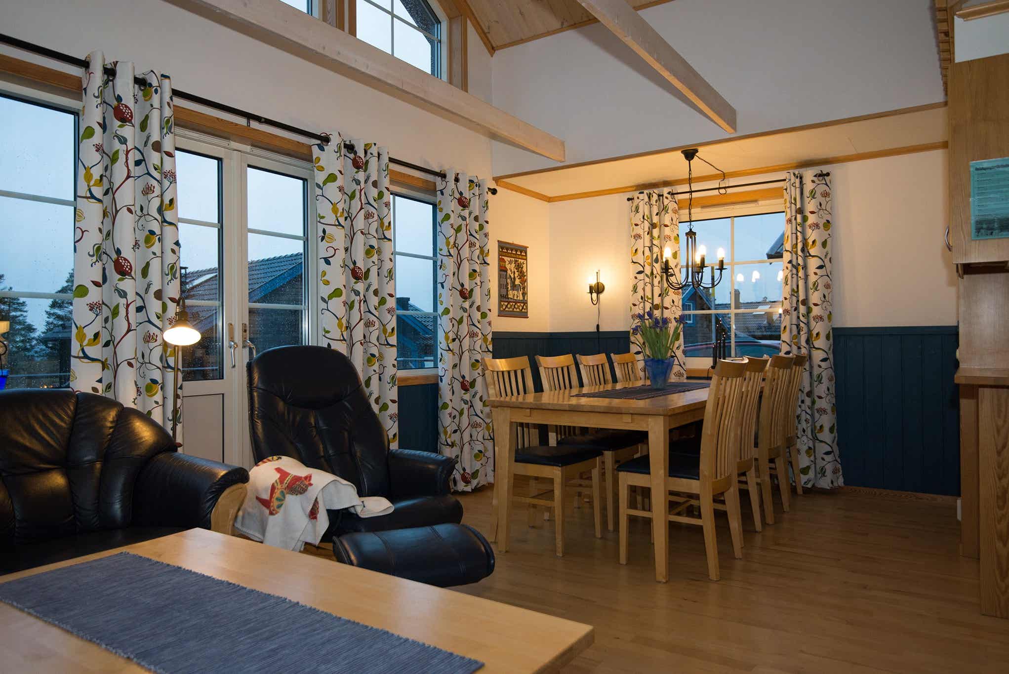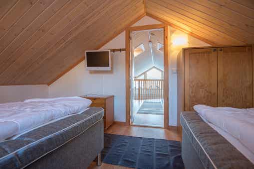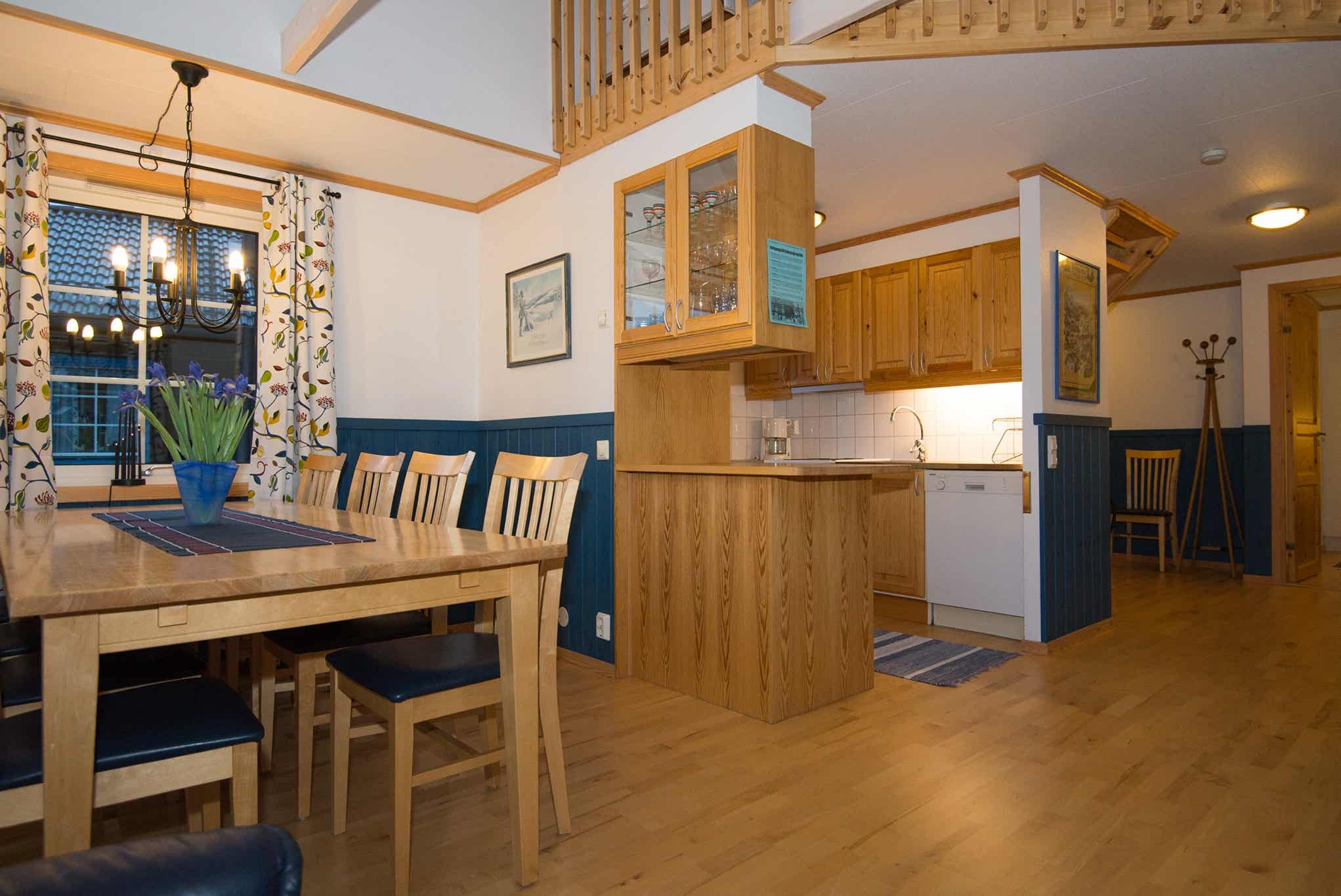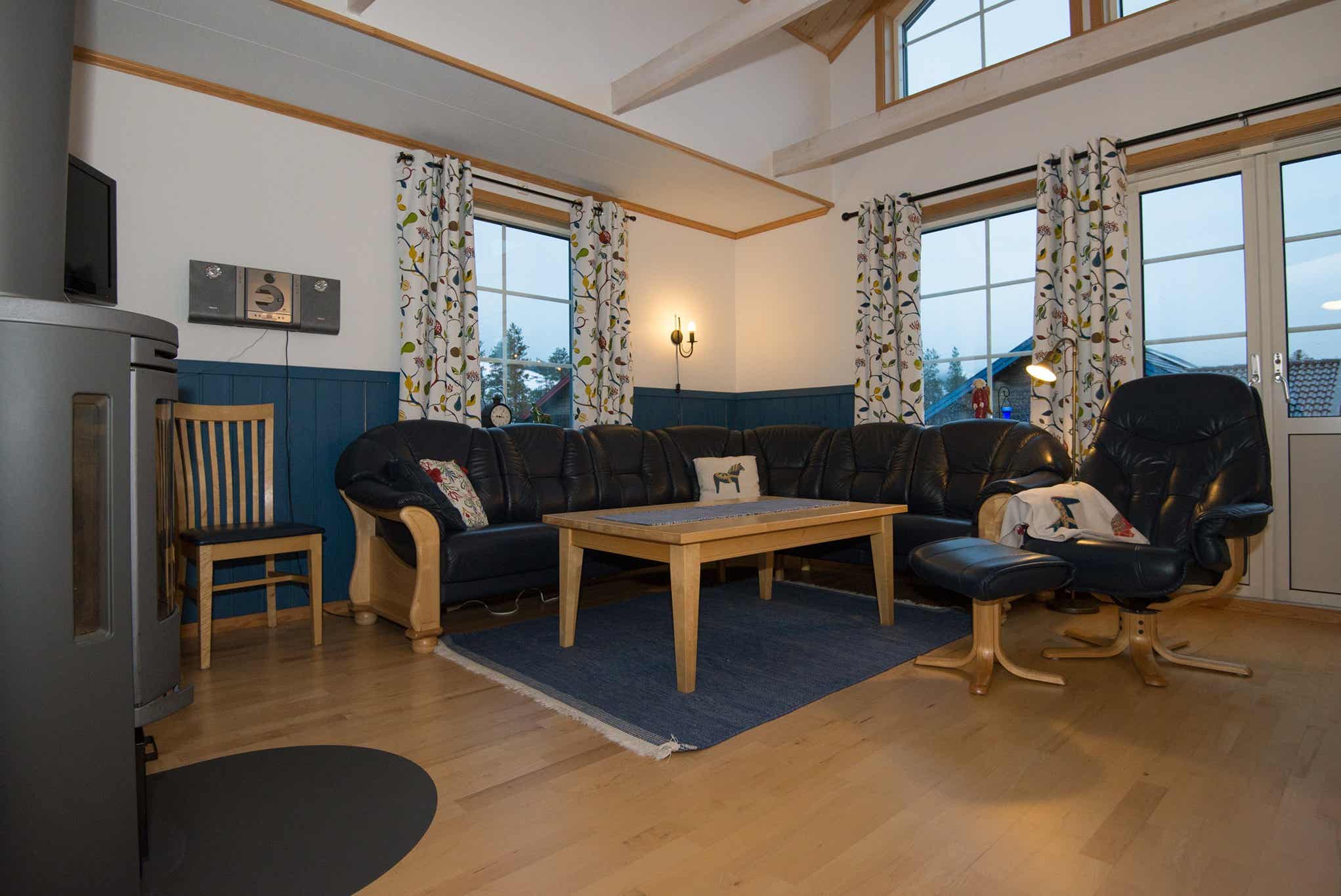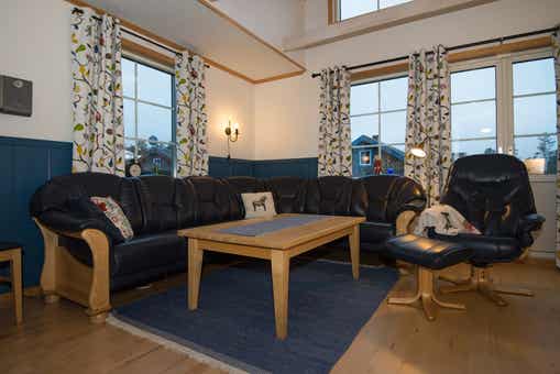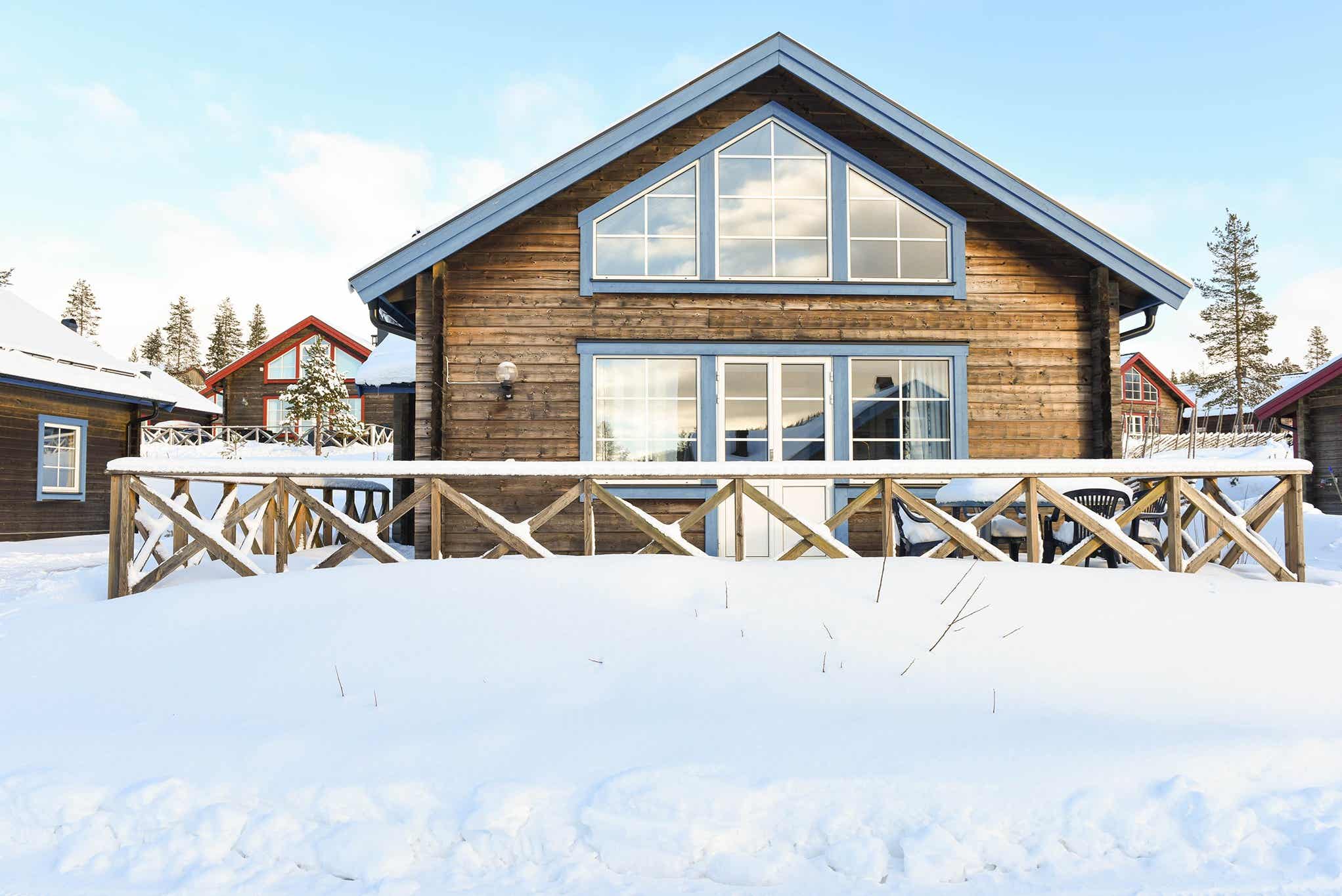 Horizon Lodge ligt in Hundfjället. Vrijstaand huisje met vide, 7+2 bedden, 100 m², woonkamer met gecombineerde keuken, 3 slaapkamers, 2 douches, 2 WC, sauna.
