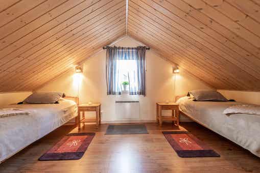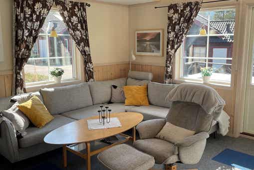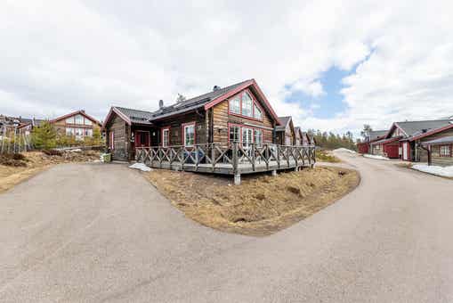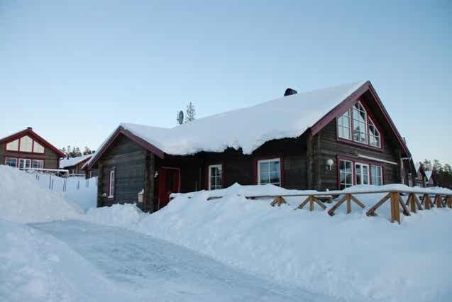 Horizon Lodge ligt in Hundfjället. Vrijstaand huisje met vide, 6+2 bedden, 100 m², woonkamer met gecombineerde keuken, 3 slaapkamers, 2 douches, 2 WC, sauna.