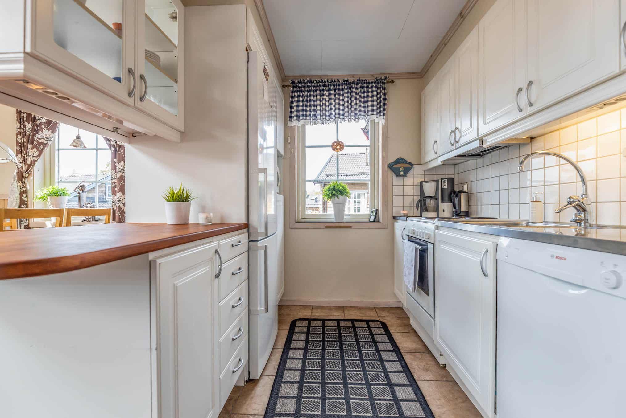 De keuken is voorzien van fornuis met oven, koelkast, vriezer, vaatwasser, magnetron.
