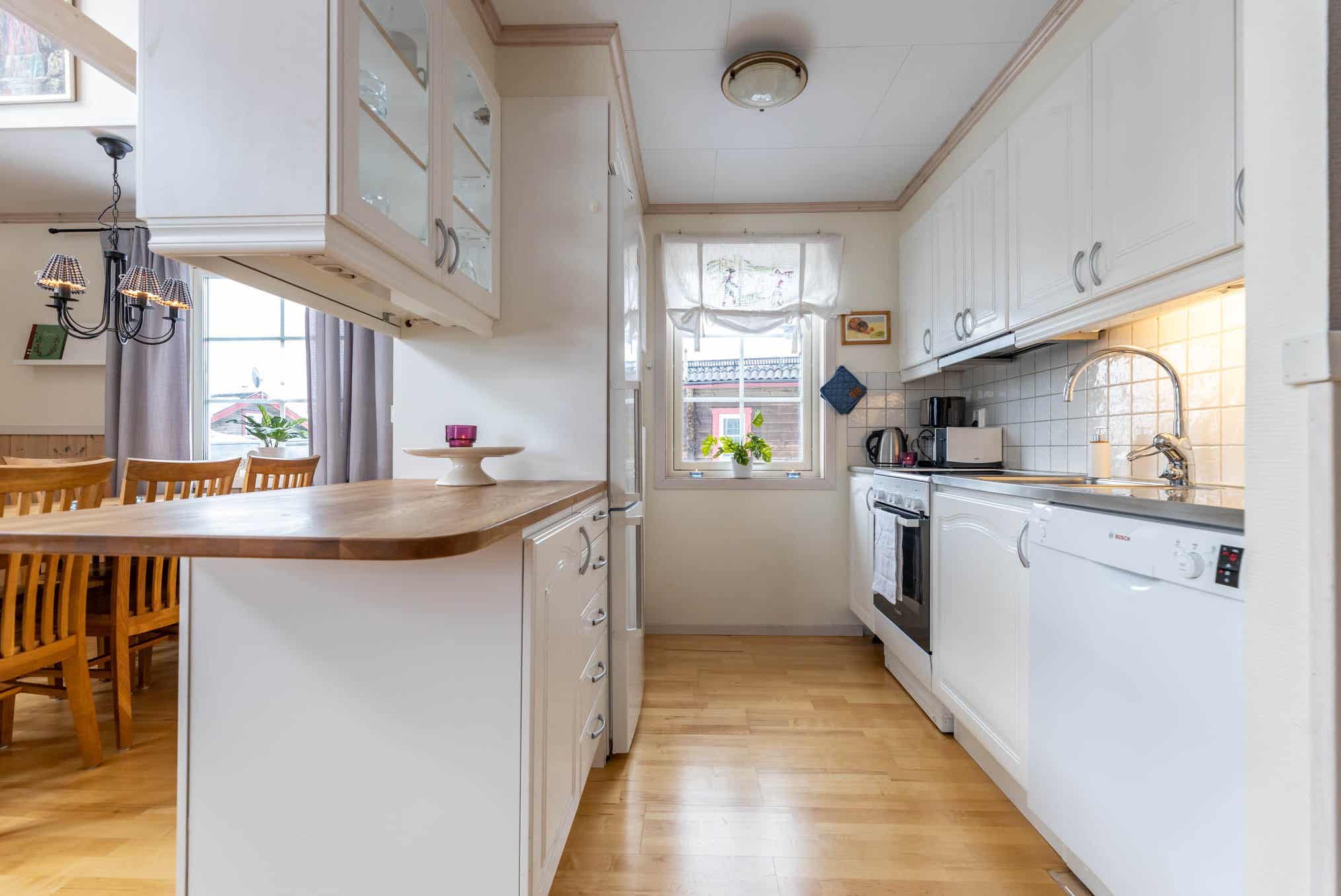 De keuken is voorzien van fornuis met oven, koelkast, vriezer, magnetron, vaatwasser.