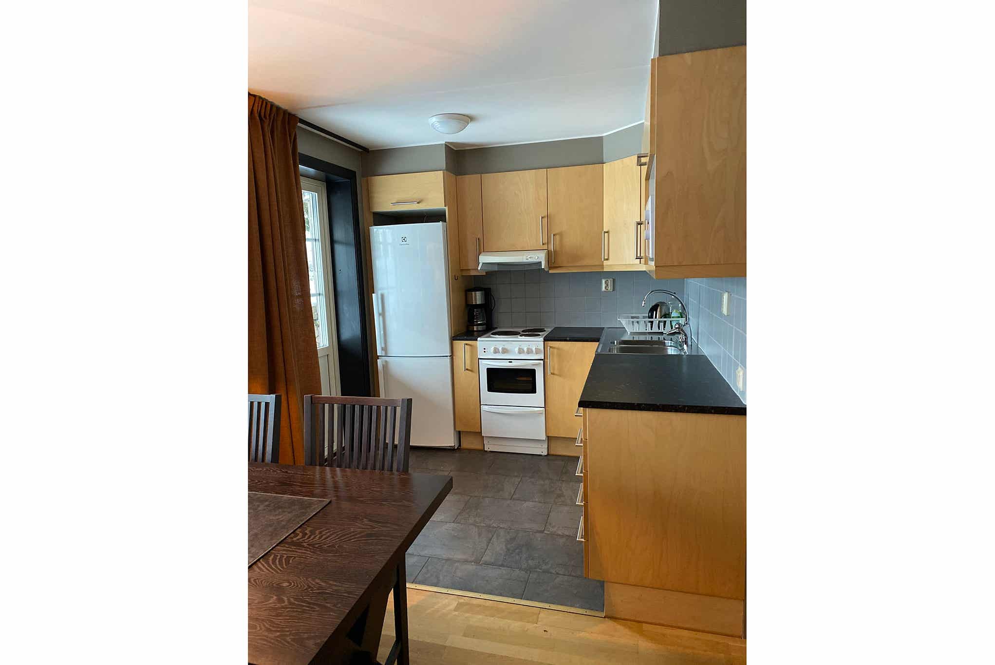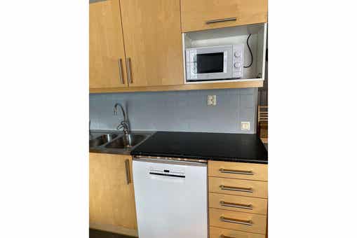 De keuken is voorzien van fornuis met oven, koelkast, vriezer, vaatwasser, magnetron.