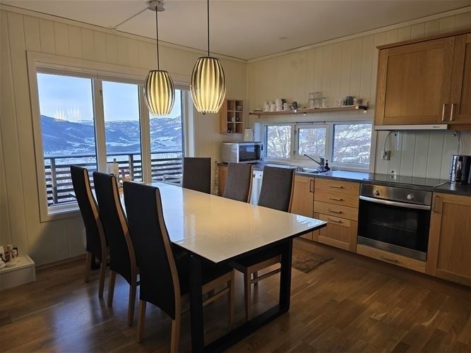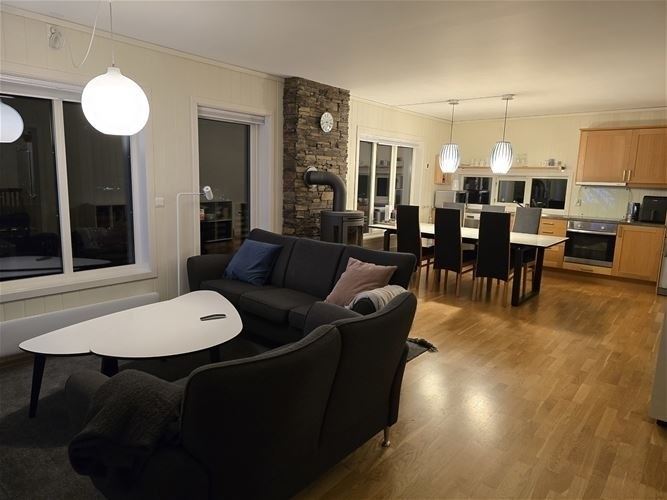 Jaertunet 36B biedt alles wat u nodig heeft voor een ontspannen verblijf. De keuken is voorzien van een kookplaat, koelkast, vriezer, vaatwasser, magnetron en koffiezetapparaat. De eetkamer biedt plaats aan 9 personen, ideaal om samen van een maaltijd te genieten. Na een dag vol activiteiten kunt u heerlijk ontspannen in de woonkamer, ingericht met een bank, televisie en een gezellige open haard; ideaal voor warme, gezellige avonden bij het vuur.