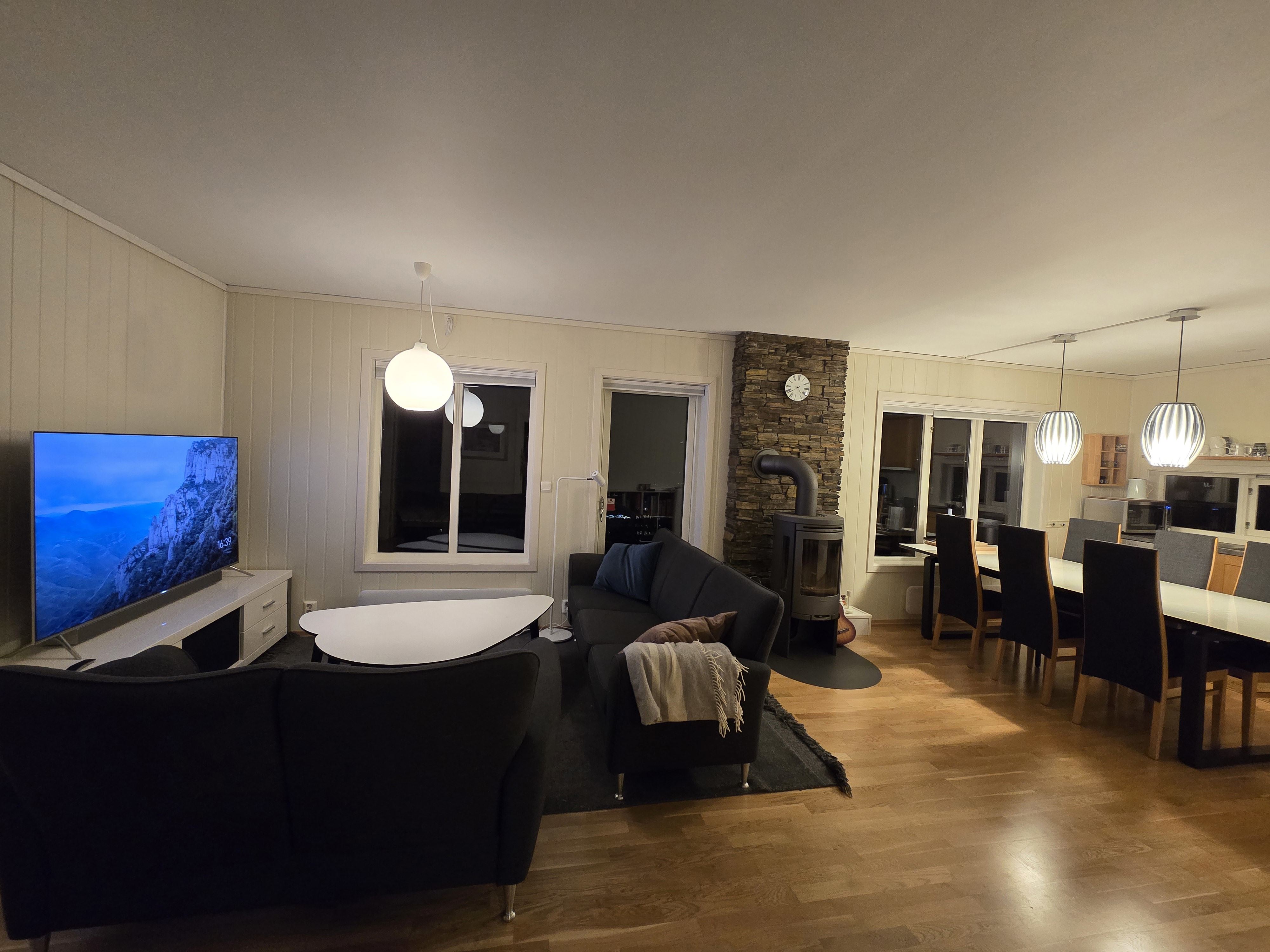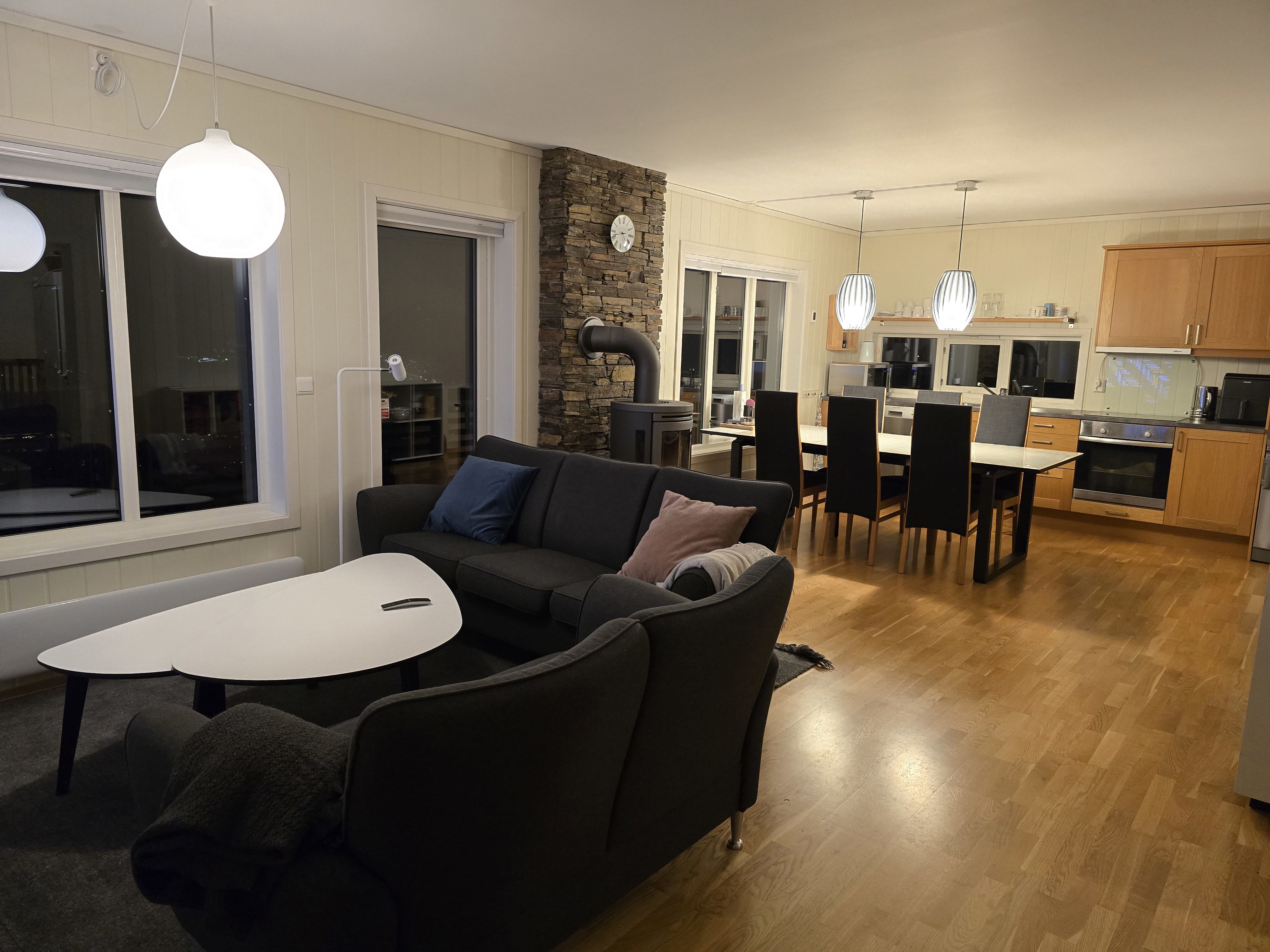 Jaertunet 36B biedt alles wat u nodig heeft voor een ontspannen verblijf. De keuken is uitgerust met een fornuis, koelkast, vriezer, vaatwasser, magnetron en koffiezetapparaat. De eetkamer heeft plaats voor 9 personen, perfect om samen te genieten van maaltijden. Na een dag vol activiteiten, kunt u ontspannen in de woonkamer, ingericht met een bank, tv en een gezellige open haard-ideaal voor warme, aangename avonden bij het vuur.