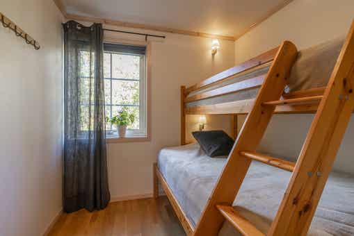 Slaapkamers:Slaapkamer-1 = 1 stapelbed met 120 cm breed onderbed. Slaapkamer-2 = 1 tweepersoonsbed. Slaapkamer-3 = 1 stapelbed. Slaapkamer-4 = 2 eenpersoonsbedden.