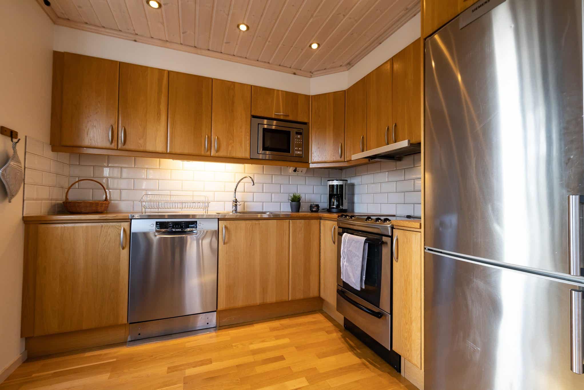 De keuken is voorzien van kookplaat, oven, koelkast, vriezer, vaatwasser, magnetron.