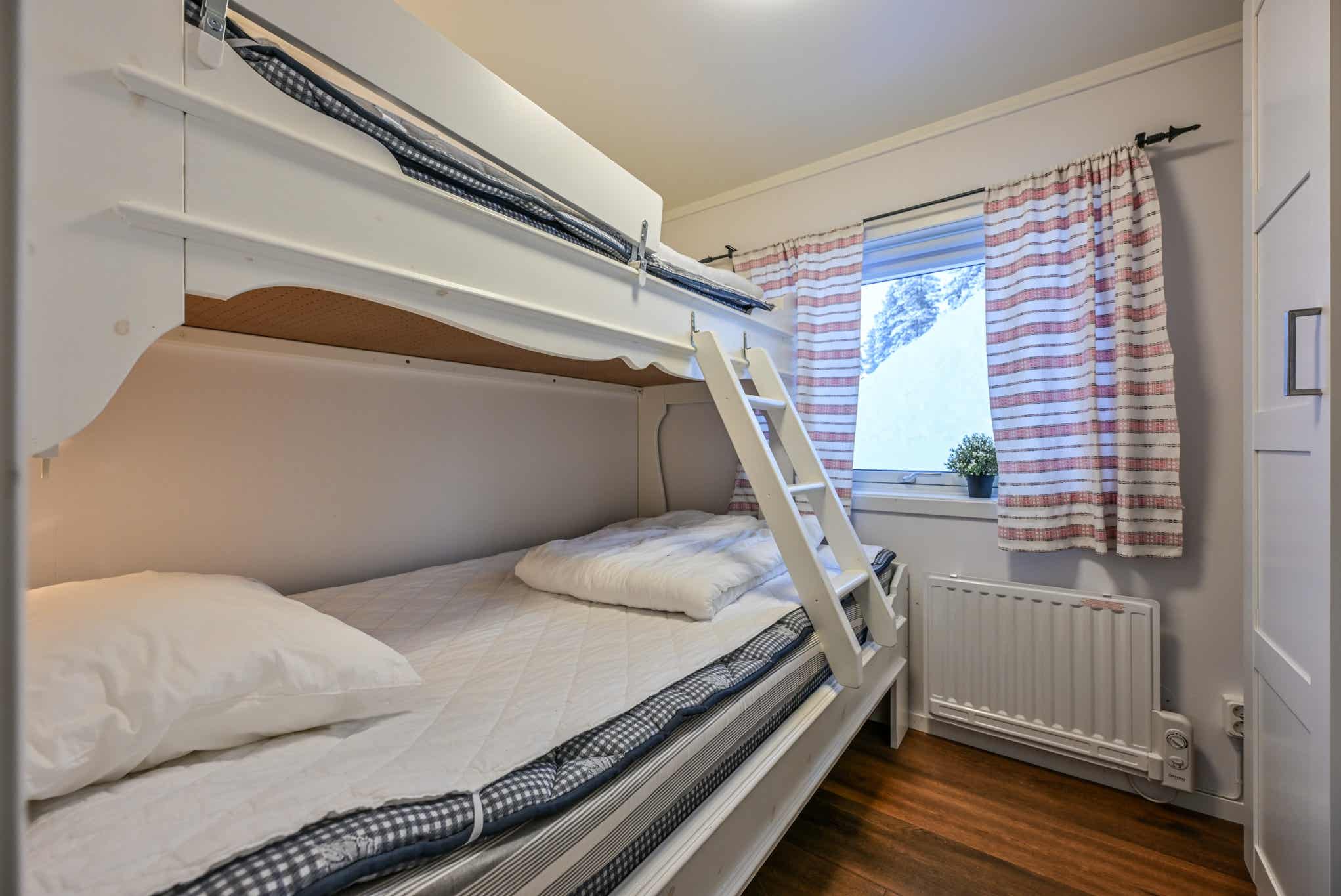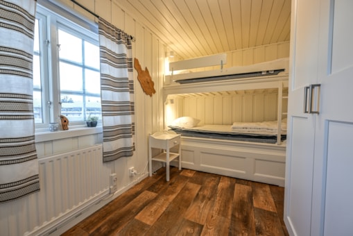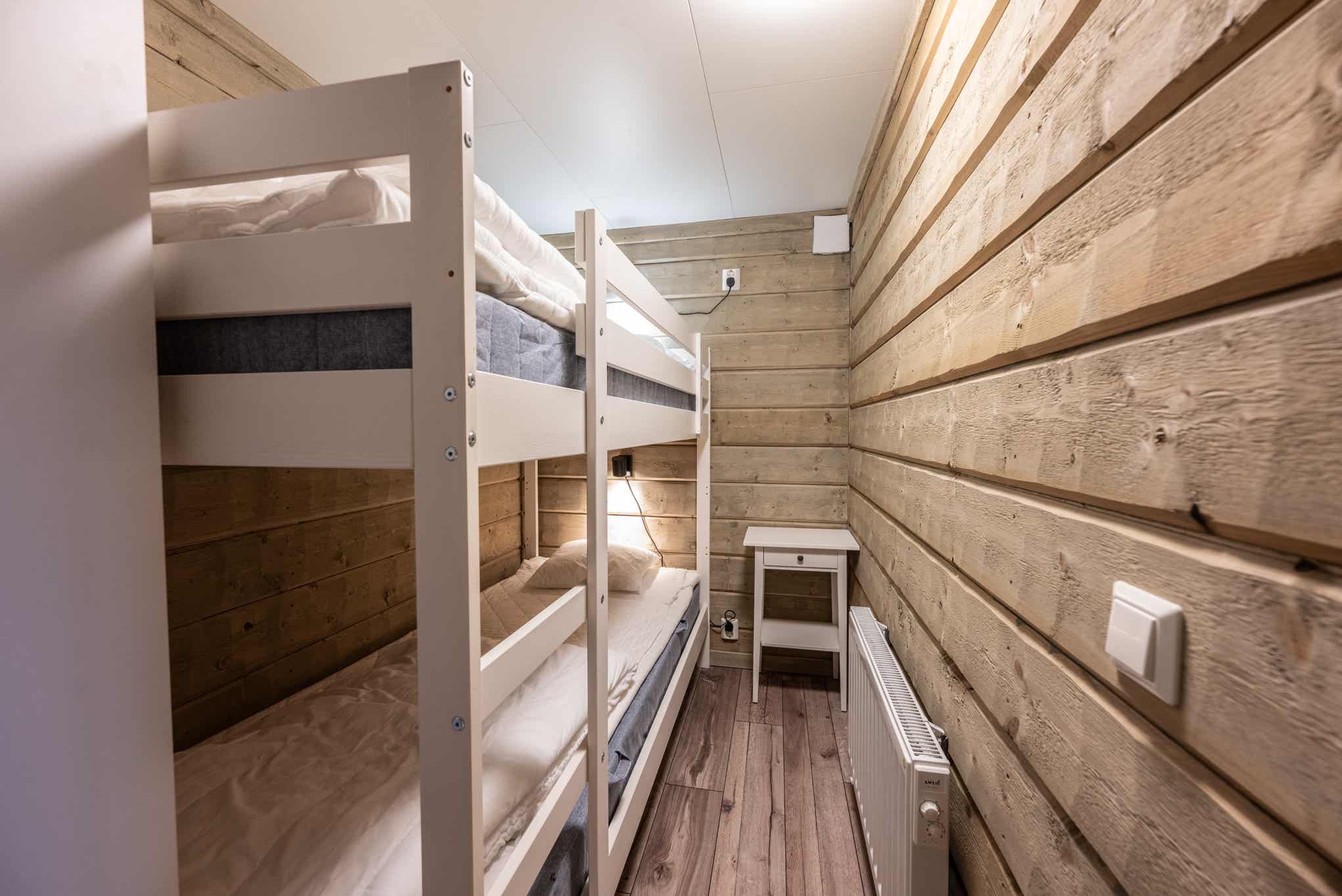 Slaapkamers:Slaapkamer-1 = 1 stapelbed met 120 cm breed onderbed en 90 cm breed bovenbed. Slaapkamer-2 = 1 stapelbed. Slaapkamer-3 = 1 stapelbed.