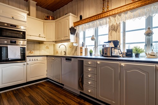 De keuken is voorzien van fornuis met oven, koelkast, vriezer, magnetron.