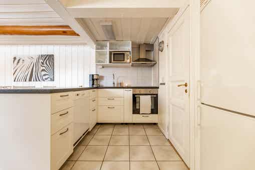 De keuken is voorzien van inductiekookplaat, inbouwoven, koelkast, vriezer, vaatwasser, magnetron.
