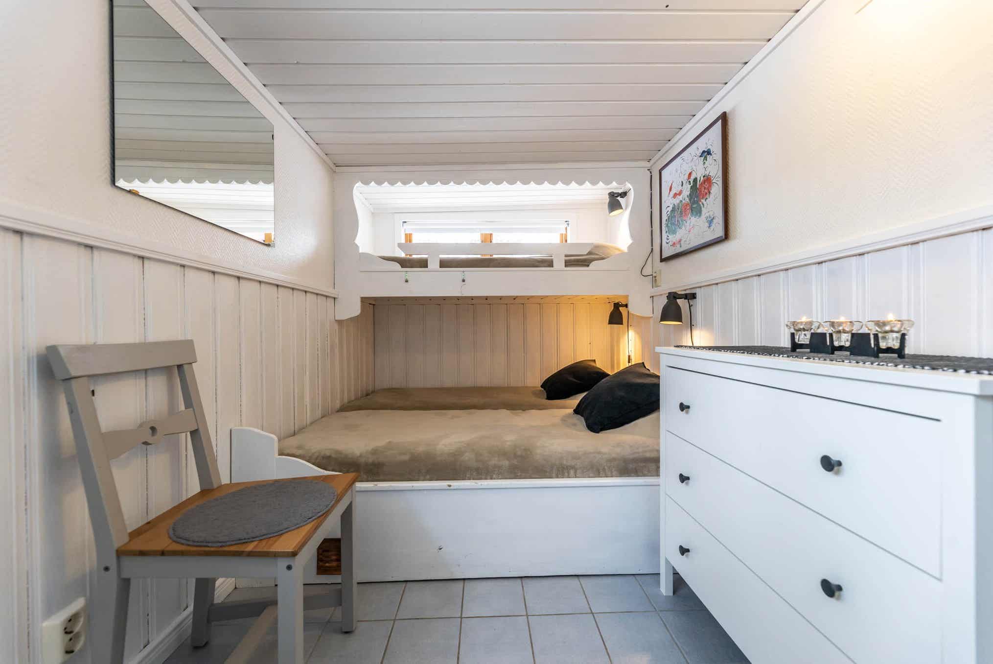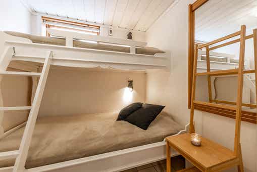 Slaapkamers:Slaapkamer-1 = 1 stapelbed met een 180 cm breed onderbed. Slaapkamer-2 = 1 stapelbed met 120 cm breed onderbed.